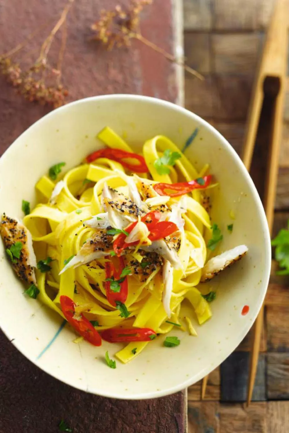 Deze frisse pasta met gerookte makreel, pittige gember en knoflook legt zilte vis, citrus en een vleugje chili samen in een licht pittige, aromatische maaltijd. Door de pasta beetgaar te koken en de knoflook, chili en gember kort te stoven zet je in een handomdraai een smaakvol eenpansgerecht op tafel, perfect voor een snelle doordeweekse maaltijd of zomerse lunch. Werk af met citroenolijfolie en verse bladpeterselie voor een frisse finish.