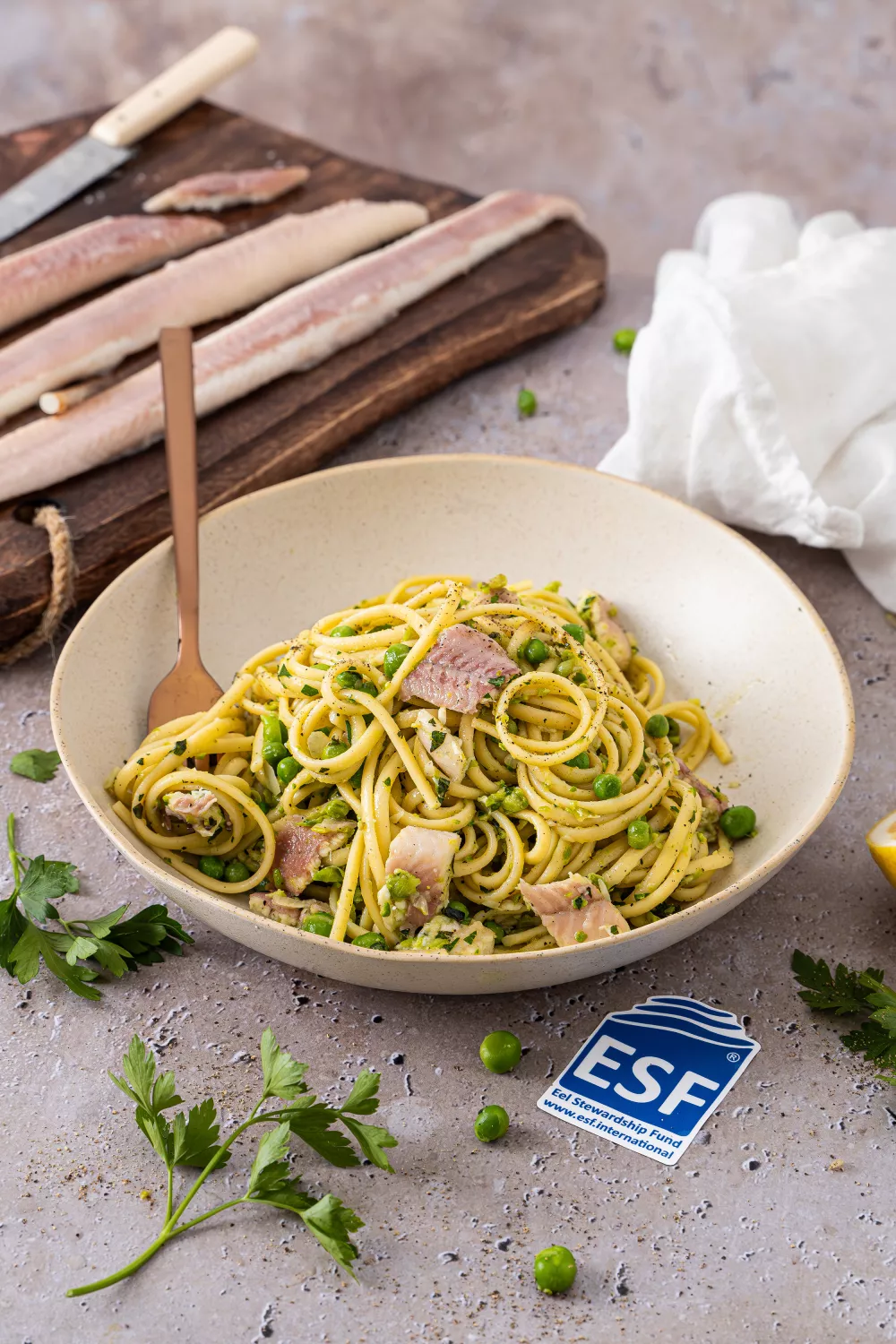 Romige linguine met gerookte paling, zoete doperwten en een frisse citroenbotersaus: een eenvoudig doch verfijnd pastagerecht dat ideaal is voor een zomerse avond of een intiem diner. Met roomboter en een scheut pastawater maak je snel een fluweelachtige saus die met munt en peterselie oplicht.