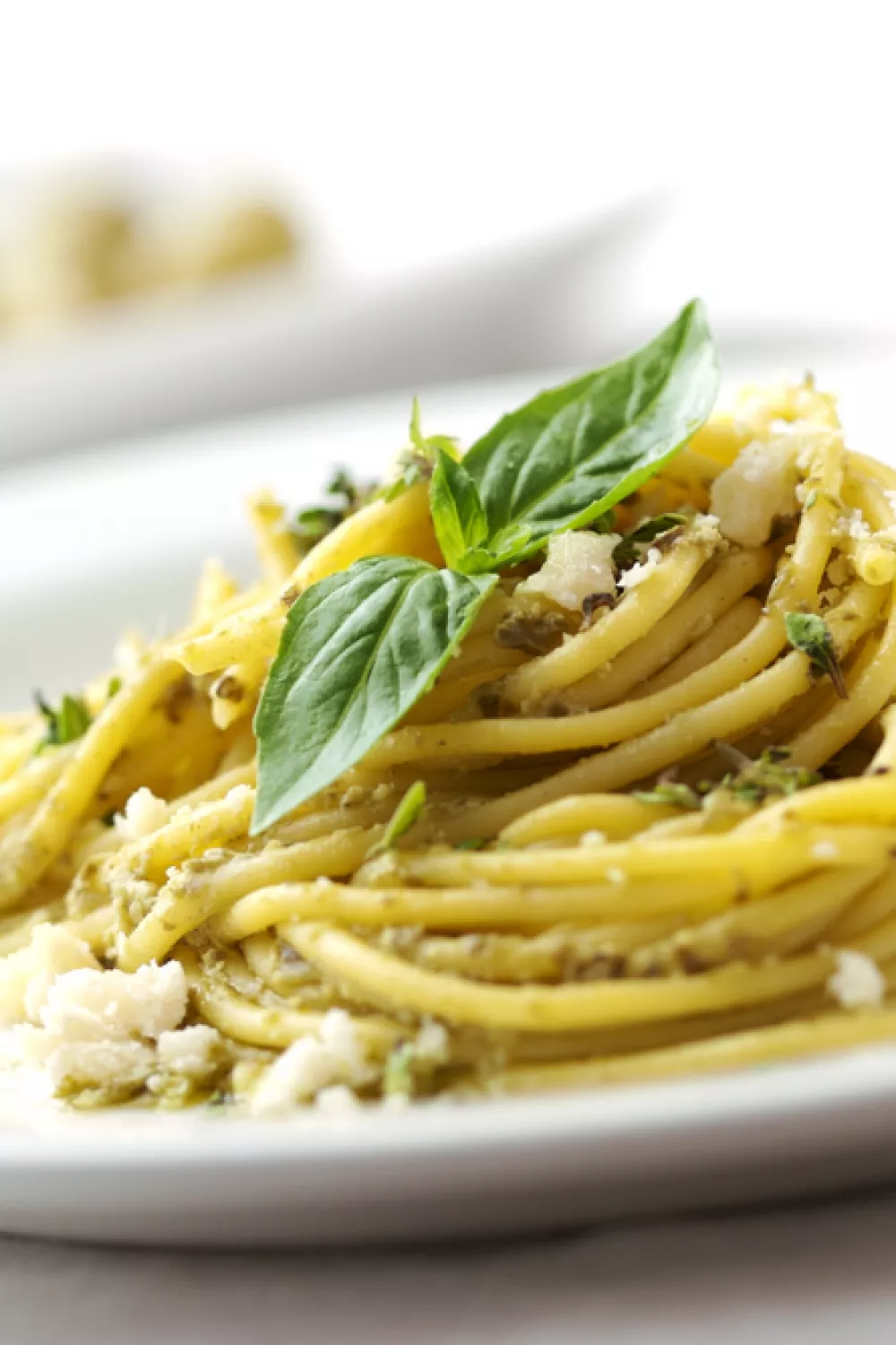 Werk af met een blaadje basilicum en een extra handje parmezaanse kaas.