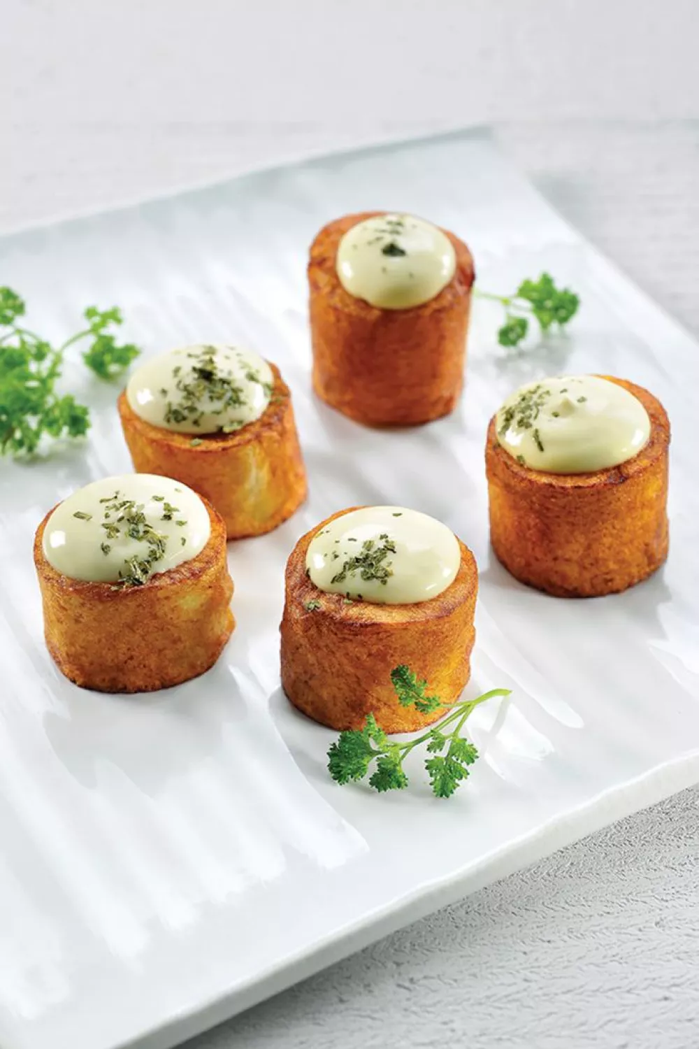 Patatas bravas op een verrassende manier: zachte aardappelcups die eerst langzaam in zonnebloemolie garen en daarna goudbruin gefrituurd worden. Vervolledig ze met een romige lookmayonaise en een vleugje rozemarijn voor hartige mediterrane smaken die perfect passen bij tapas, borrelhapjes of een zomerse avond. Krokant van buiten met een zachte, smaakvolle vulling laat dit eenvoudige recept klassieke frituurtechniek en huisgemaakte emulsie stralen.