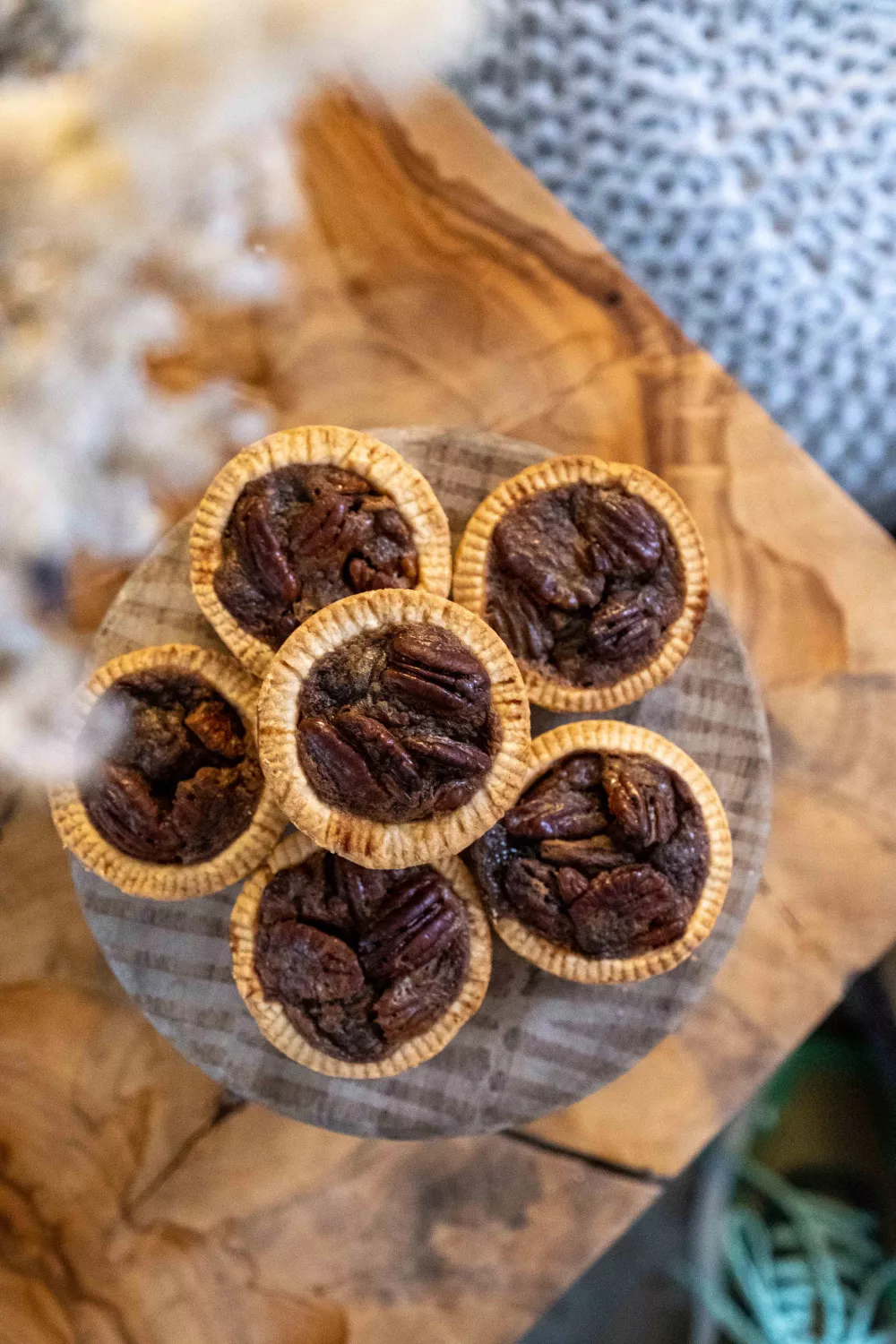Kleine pecannotentaartjes met knapperig zanddeeg en een warme, karamelachtige vulling van esdoornsiroop, lichtbruine suiker en kaneel zijn ideaal als herfstig dessert of feestelijk gebakje. Het tarwebloemdeeg wordt kort gekneed, uitgerold en in muffinvormpjes gebakken nadat de pecannotenvulling met boter, ei en vanille erin is gegoten. Makkelijk te maken voor brunch, winterse koffie of na het diner.