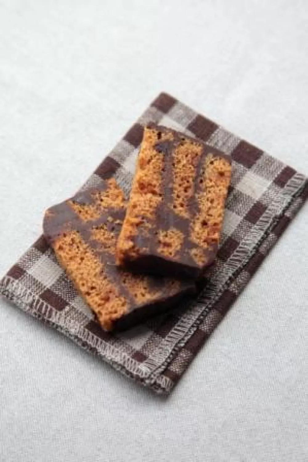Een kruidige peperkoek met zijdezachte chocoladeganache brengt winterse gezelligheid op tafel. De cake met speculaaskruiden, honing en bruine suiker wordt luchtig gebakken en daarna in dunne plakjes met romige ganache in laagjes opgebouwd en gekoeld voor een strakke snede. Ideaal als dessert, bij de koffie of voor een feestelijke brunch, een eenvoudig stukje patisserie met rijke chocoladesmaak.