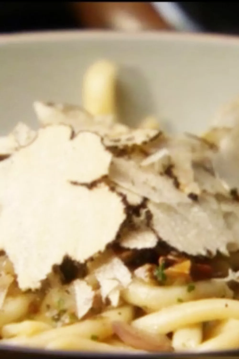 Schep de pasta in een bord en rasp er rijkelijk de truffel over.