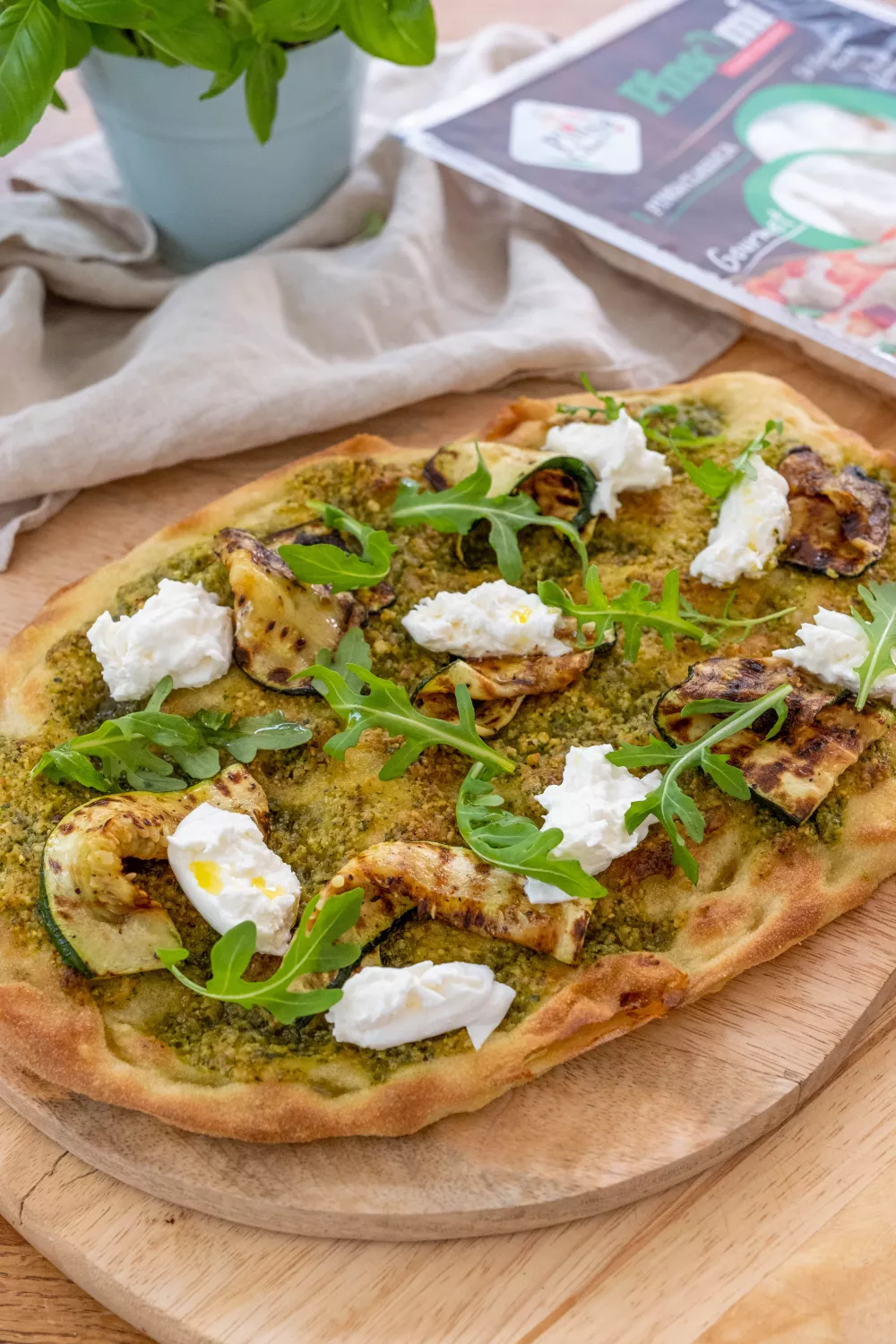 Stappenplan om recept “Pinsa verde met pesto, courgette en burrata” te bereiden