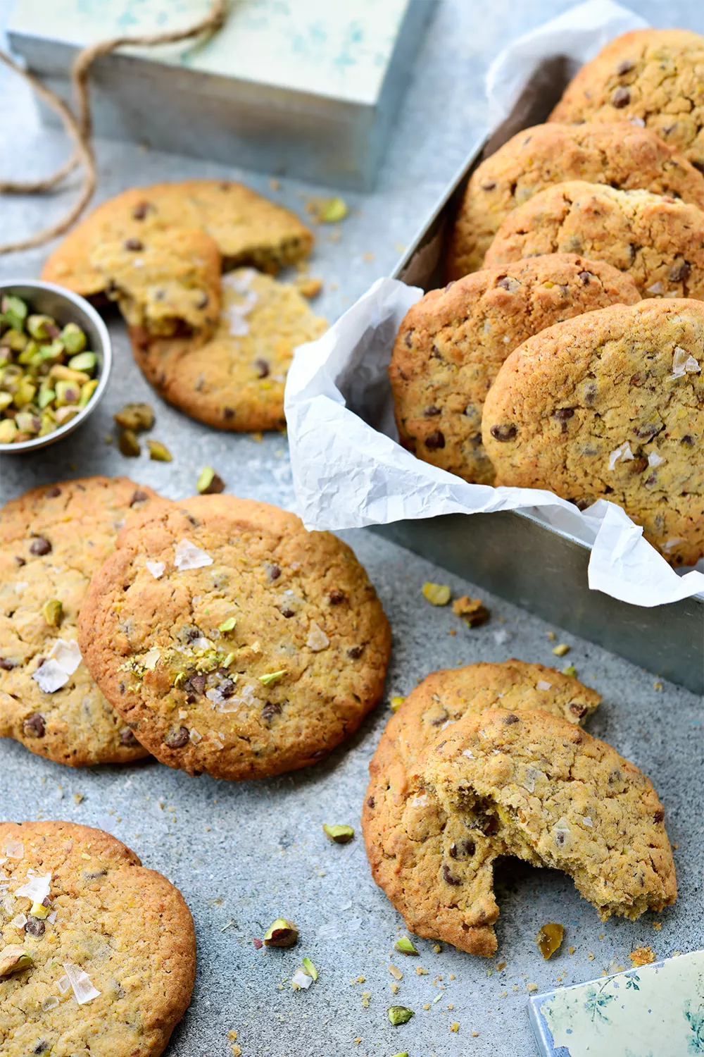 Trakteer jezelf op deze onweerstaanbare pistachekoeken met pure chocolade. Witte en lichtbruine suiker zorgen voor een zachte textuur, terwijl pistachemeel en gehakte noten zorgen voor die intense, nootachtige smaak. Perfect als lekkernij bij de koffie of als zoete afsluiter.