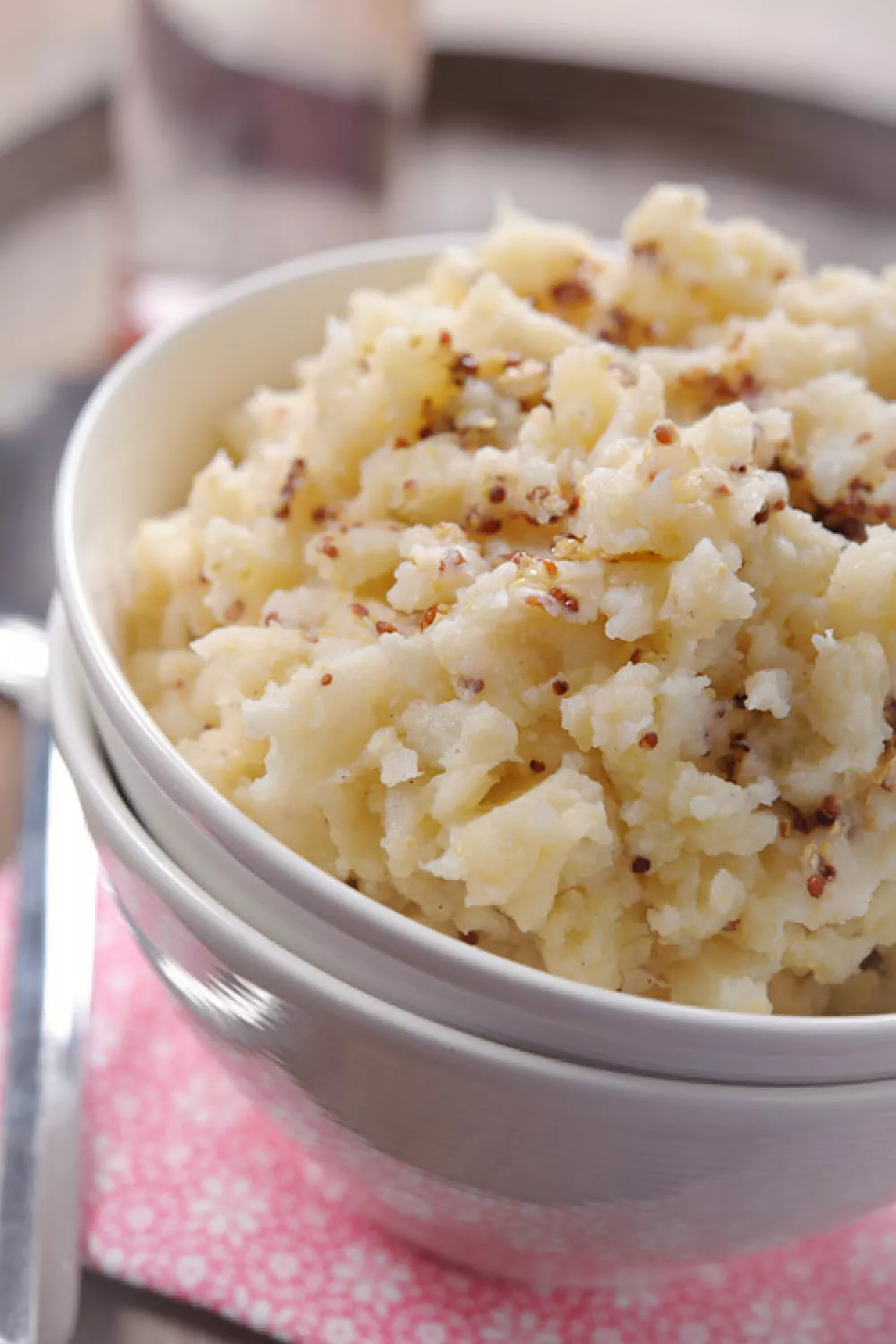 Een smeuïge bloemkoolpuree met aardappelen en pittige grove mosterd, op smaak gebracht met gesmolten belegen Gouda. Door kort te koken en alles fijn te stampen ontstaat een romige stamppot die ideaal is als warm bijgerecht bij winterse diners of gezellige doordeweekse maaltijden. Het eenvoudige, huiselijke recept is snel te maken en geeft klassieke comfort een hartige twist.