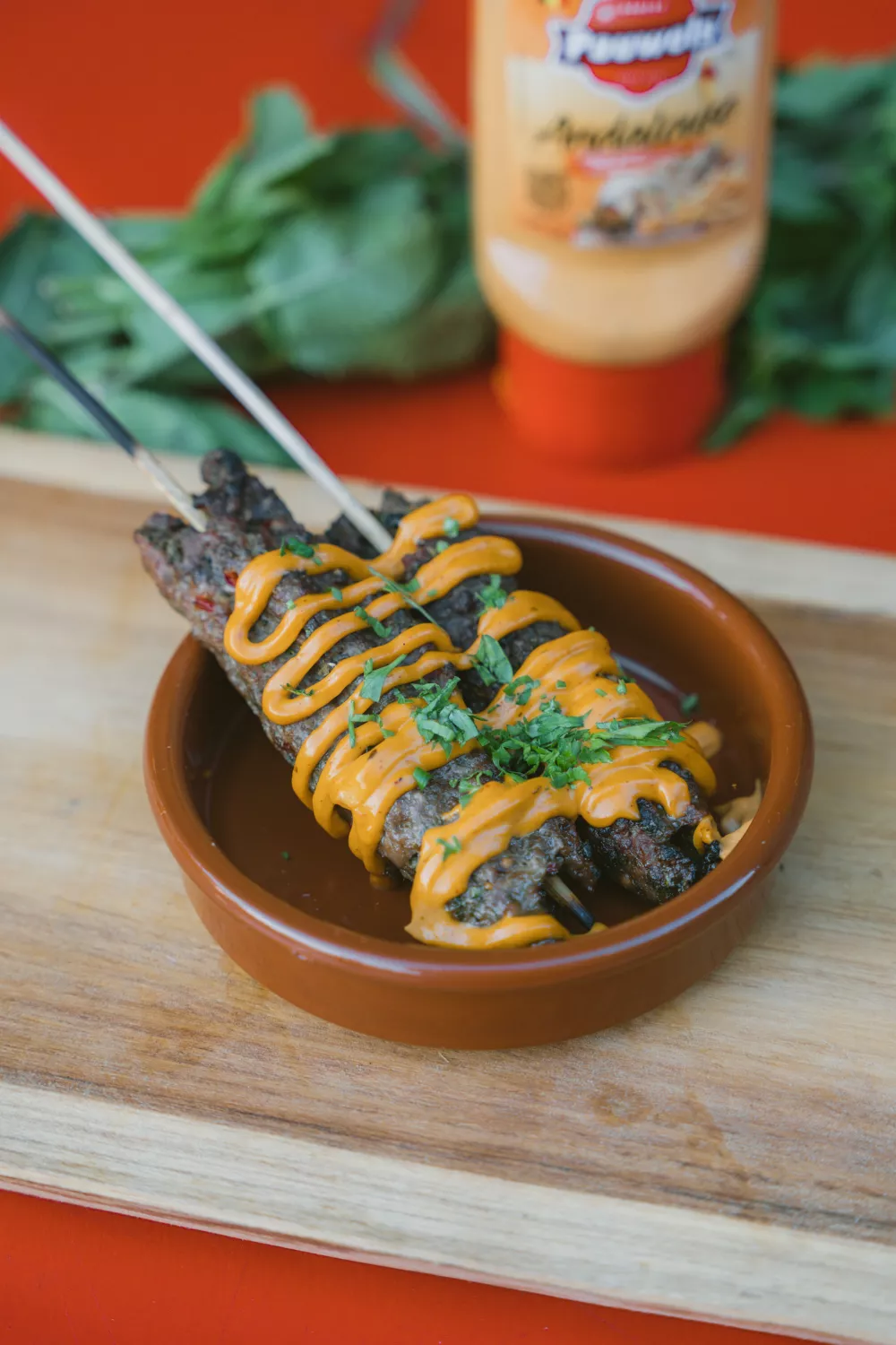 Werk de spiesjes nog af met andalouse alvorens te serveren.