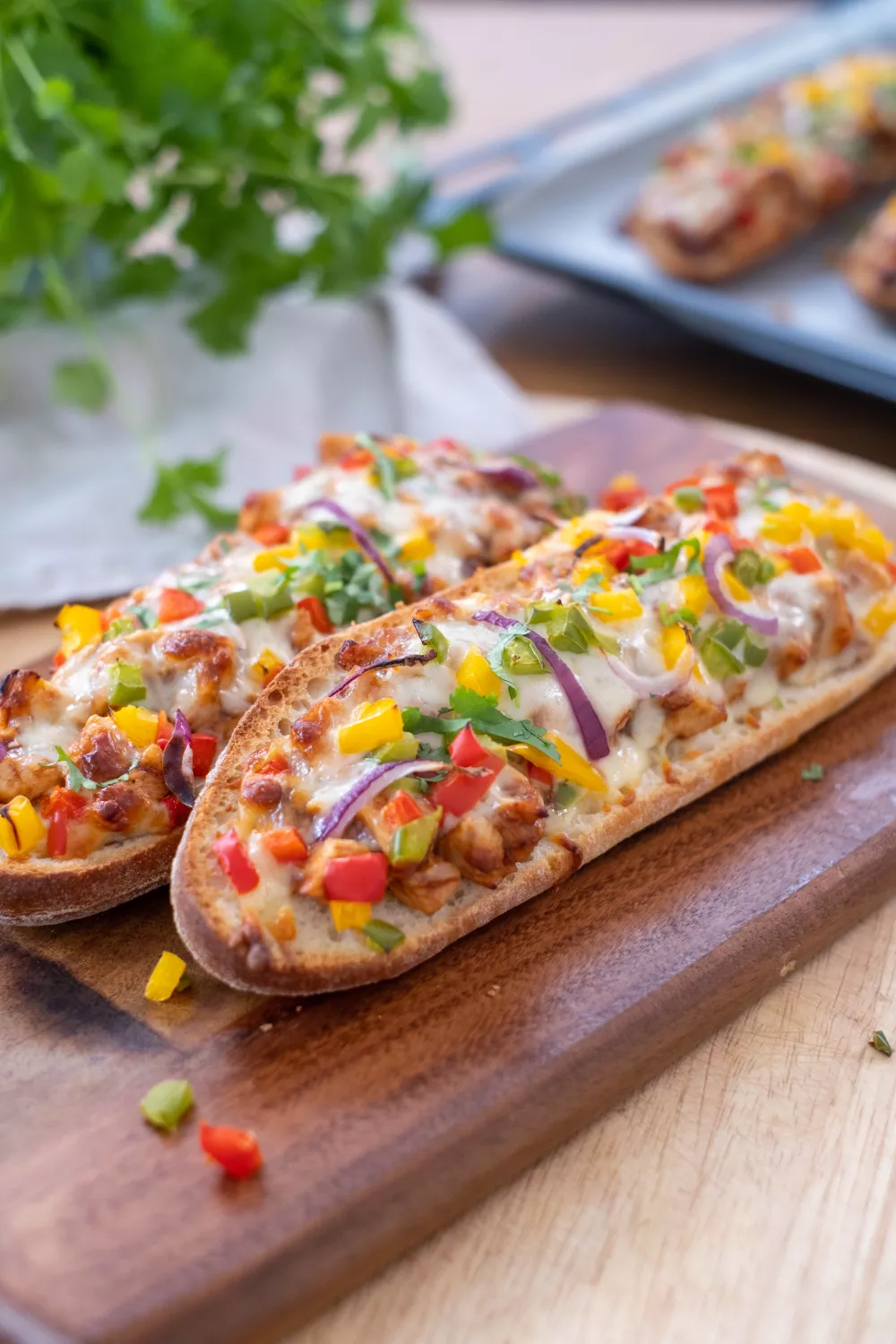 Deze pizza baguette met barbecue chicken verandert een stokbrood in een smaakvol comfortgerecht vol rokerige barbecuesaus, malse kip en gesmolten mozzarella. Met kleurrijke paprikablokjes, ringetjes rode ui en een frisse toets koriander is het ideaal als snelle lunch, borrelhap of zomers avondmaal. In de oven klaarmaken zorgt in korte tijd voor krokante randen en een warme, smeuïge topping.