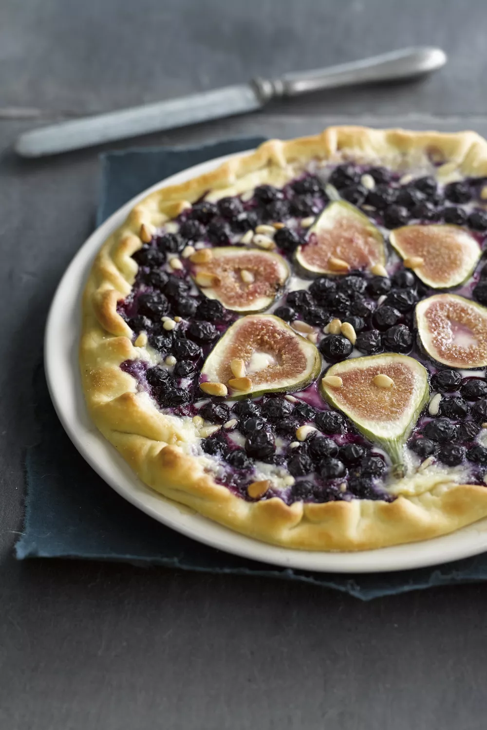 Zomerachtige dessertpizza met een krokante zelfgemaakte deegbodem, romige mascarpone en sappige bosbessen die samen een verrassend zoet en licht hartig smaakspel vormen. Verse vijgen, een vleugje honing en geroosterde pijnboompitten geven diepte en textuur, perfect voor brunch, feestelijk nagerecht of picknick. Het deeg laat even rijzen en de pizza bakt snel in de oven, klaar in een handomdraai.