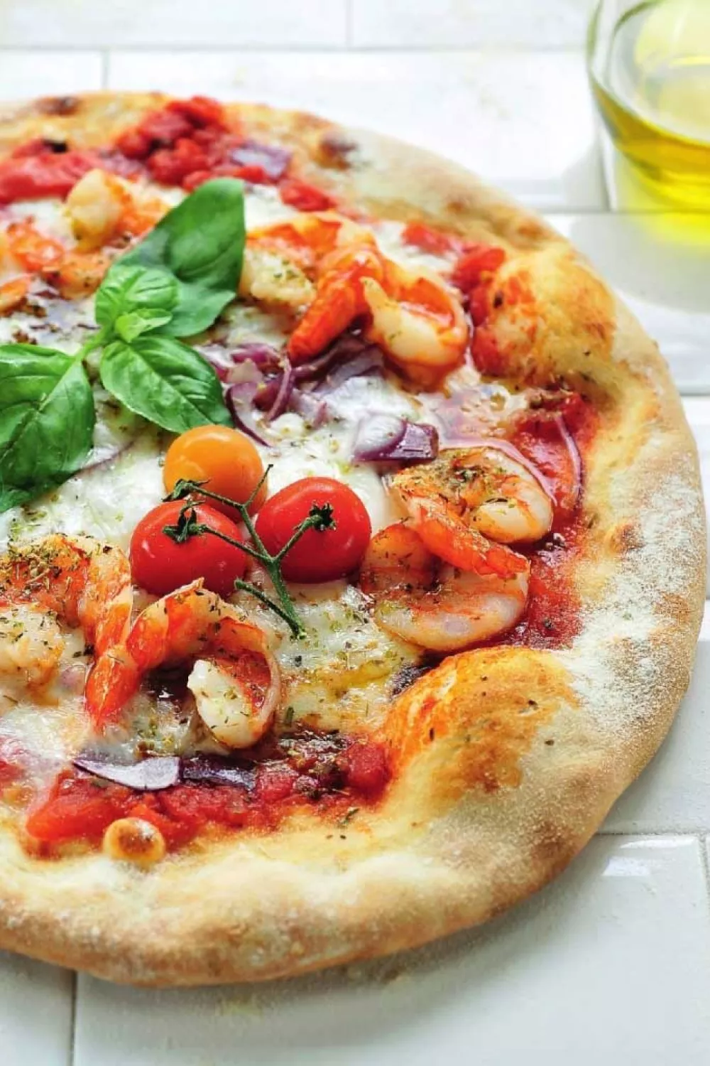 Deze luchtige ovengebakken pizza met sappige scampi's, pittige chilipepertjes en romige mozzarella brengt een zomerse mediterrane toets aan je tafel. Met een frisse tomatensaus, verse basilicum, knoflook en ringen rode ui is hij perfect voor een snelle doordeweekse maaltijd of een gezellige borrel. Door de garnalen kort mee te bakken blijven ze mals en vol van smaak.