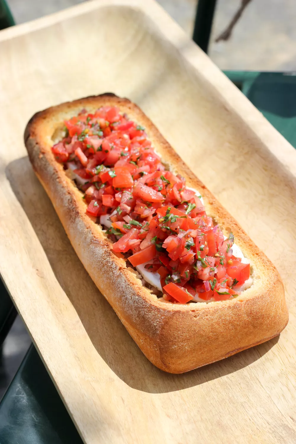 Haal het broodje van de barbecue en lepel er de fijngehakte tomaatjes over alvorens te serveren.