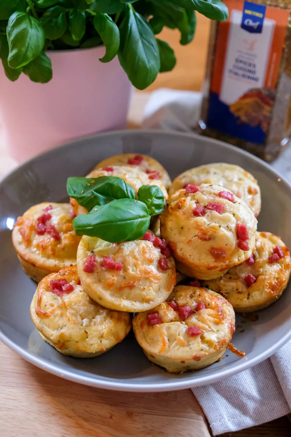Deze luchtige pizzamuffins combineren tomatensaus, gesmolten mozzarella en krokante salami tot een warme, hartige traktatie. Het eenvoudige beslag van bloem, eieren en melk wordt met Italiaanse kruiden op smaak gebracht en in de oven goudbruin gebakken. Ideaal als borrelhapje, snelle lunch of voor gezellige herfstige avonden.