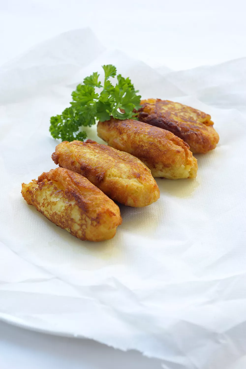 Pommes dauphine zijn een Franse klassieker van romige aardappelpuree en luchtig soezenbeslag, goudbruin en krokant van buiten en zacht van binnen. Ze worden bereid met aardappelen, boter, bloem, eieren en kippenbouillon en zacht op smaak gebracht met nootmuskaat, peper en zout. Heerlijk als bijgerecht bij vlees of als feestelijk borrelhapje, traditioneel gefrituurd op 175°C voor een luchtig en knapperig resultaat.