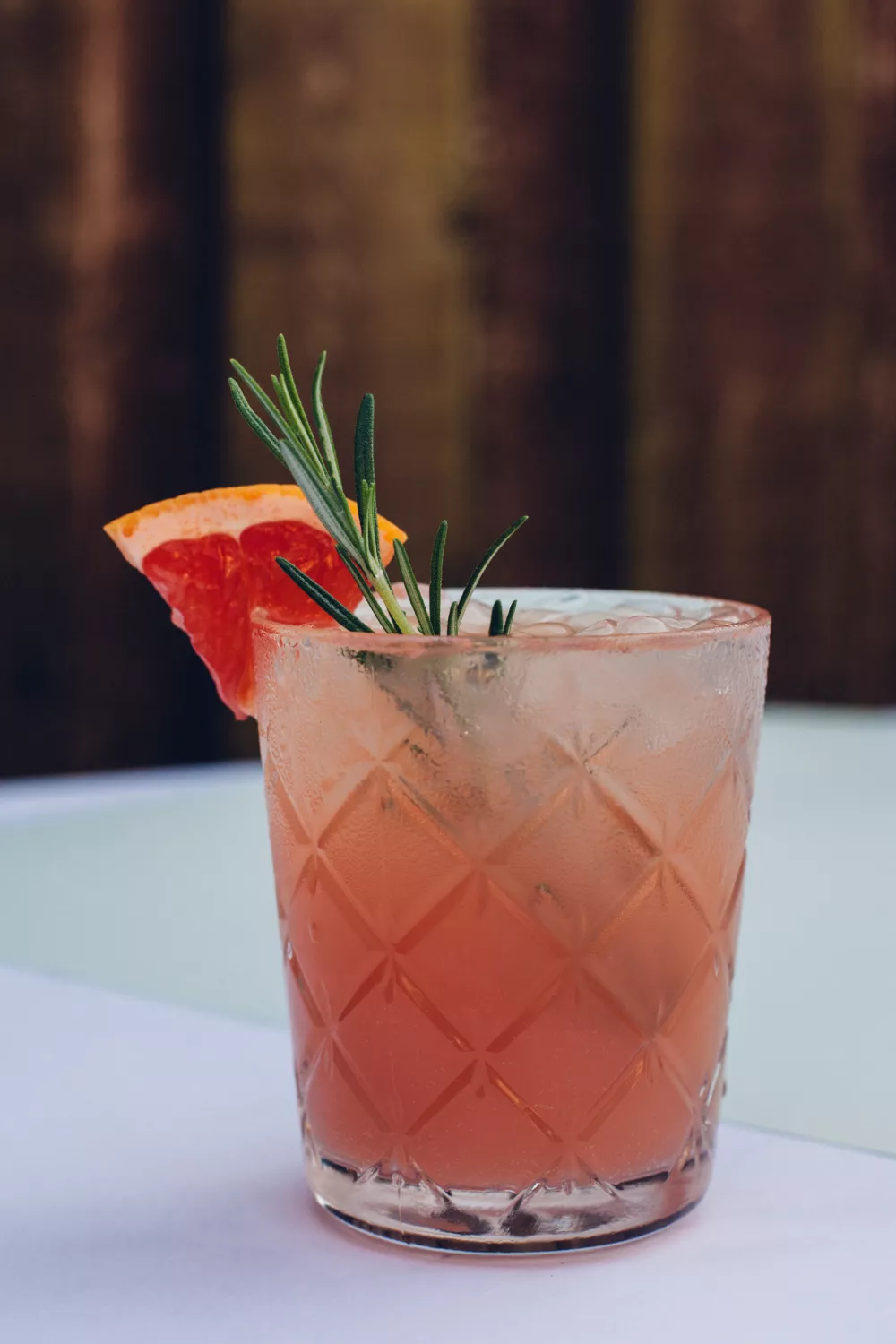 Vul het glas met 2 scheppen crushed ice. Voeg 4 eetlepels van de rozemarijnsiroop toe (de overschot kan je makkelijk enkele dagen bewaren in de koelkast). Voeg 10 cl pompelmoessap toe. Vul aan met 10 cl bruisend water.