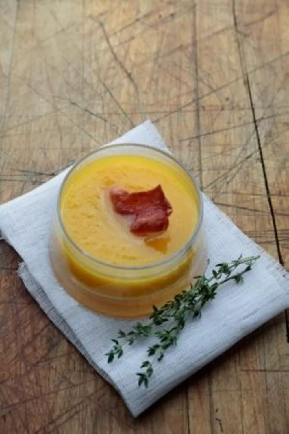 Een romige pompoensoep voor frisse herfstavonden, met ui, aardappel en tijm zacht gestoofd in groentenbouillon en daarna glad gemixt. Bovenop komen knapperige plakjes Italiaanse ham uit de oven die zorgen voor een zoute crunch. Perfect als comfortfood voor doordeweeks of als feestelijk voorgerecht.