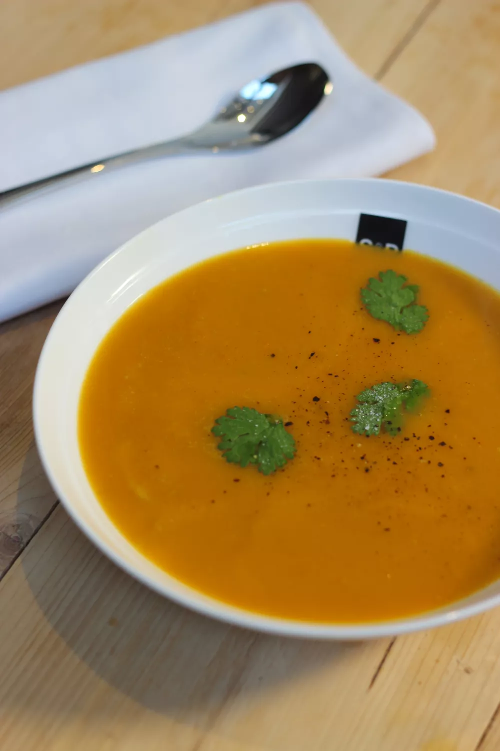 Romige pompoensoep met warme gember en frisse sinaasappel, subtiel gekruid met vadouvan en een vleugje kruidnagel voor een aromatische toets. De pompoen wordt zacht gestoofd in kippenbouillon en glad gepureerd, vervolgens afgewerkt met een scheut kokosmelk en knapperige geroosterde pompoenpitten. Ideaal als hartverwarmend herfstgerecht of elegant voorgerecht bij een gezellig diner.