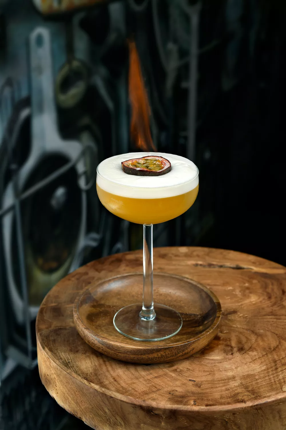 Tip voor extra spektakel:Haal een beetje vruchtvlees uit de gehalveerde passievrucht en vul op met een flinke scheut 'overproof' rum. Steek de passievrucht voorzichtig in brand. Serveer de cocktail met de brandende passievrucht en - na het uitblazen - kan de inhoud van de passievrucht ook mee opgedronken worden.