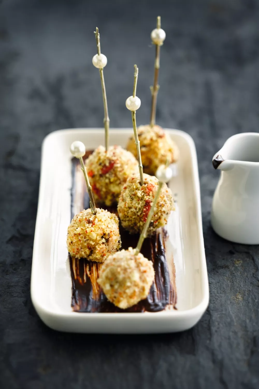 Deze elegante foie gras pralines combineren romige eendenlever met krokant geroosterde noten en een intense chocoladecoulis. De reductie van porto en bouillon geeft een zoetzure diepte en fondant chocolade maakt de saus fluweelachtig, perfect als feestelijk voorgerecht of luxe borrelhapje in de winter. Het roosteren van noten en het vormen van kleine bolletjes met twee theelepels is eenvoudig; presenteer ze op een streep coulis voor een verfijnde finishing touch.