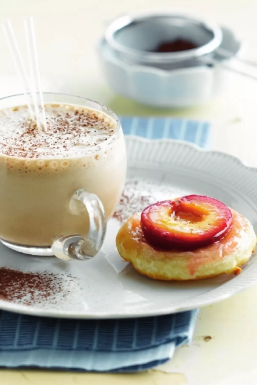 Zachte pruimen in knapperig bladerdeeg krijgen een warme kardemomtoets in deze eenvoudige pruimentaartjes uit de oven. Serveer ze warm met een romige koffiesmoothie van melk, cacaopoeder en oploskoffie voor een verfrissend contrast. Ideaal als dessert, brunchgerecht of nazomerse traktatie.