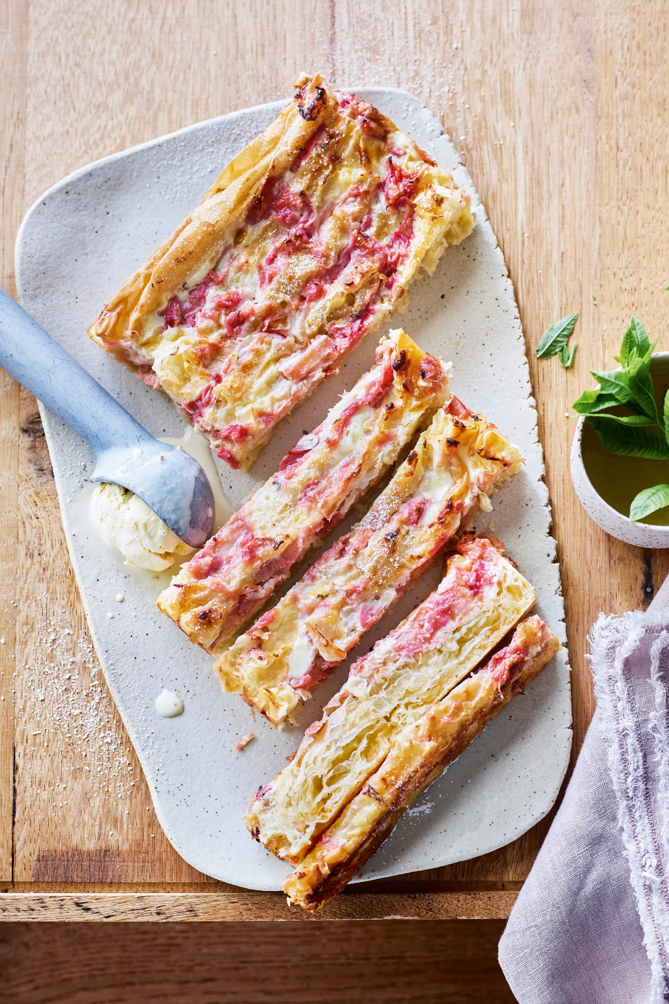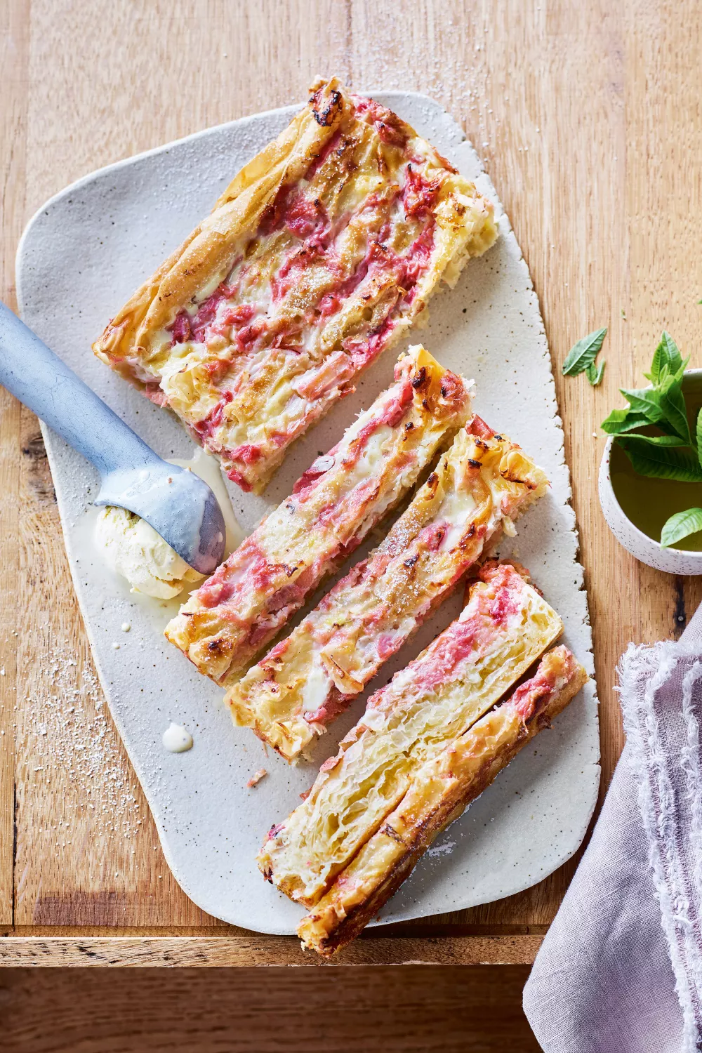Zin in een verrassend eenvoudig, maar indrukwekkend dessert? Deze rabarbermelktaart combineert krokant filodeeg met zacht gestoofde rabarber en een romige melkvulling. Een heerlijk frisse taart die perfect past bij het voorjaar en de zomer — en nog beter smaakt met een bolletje ijs erbij!