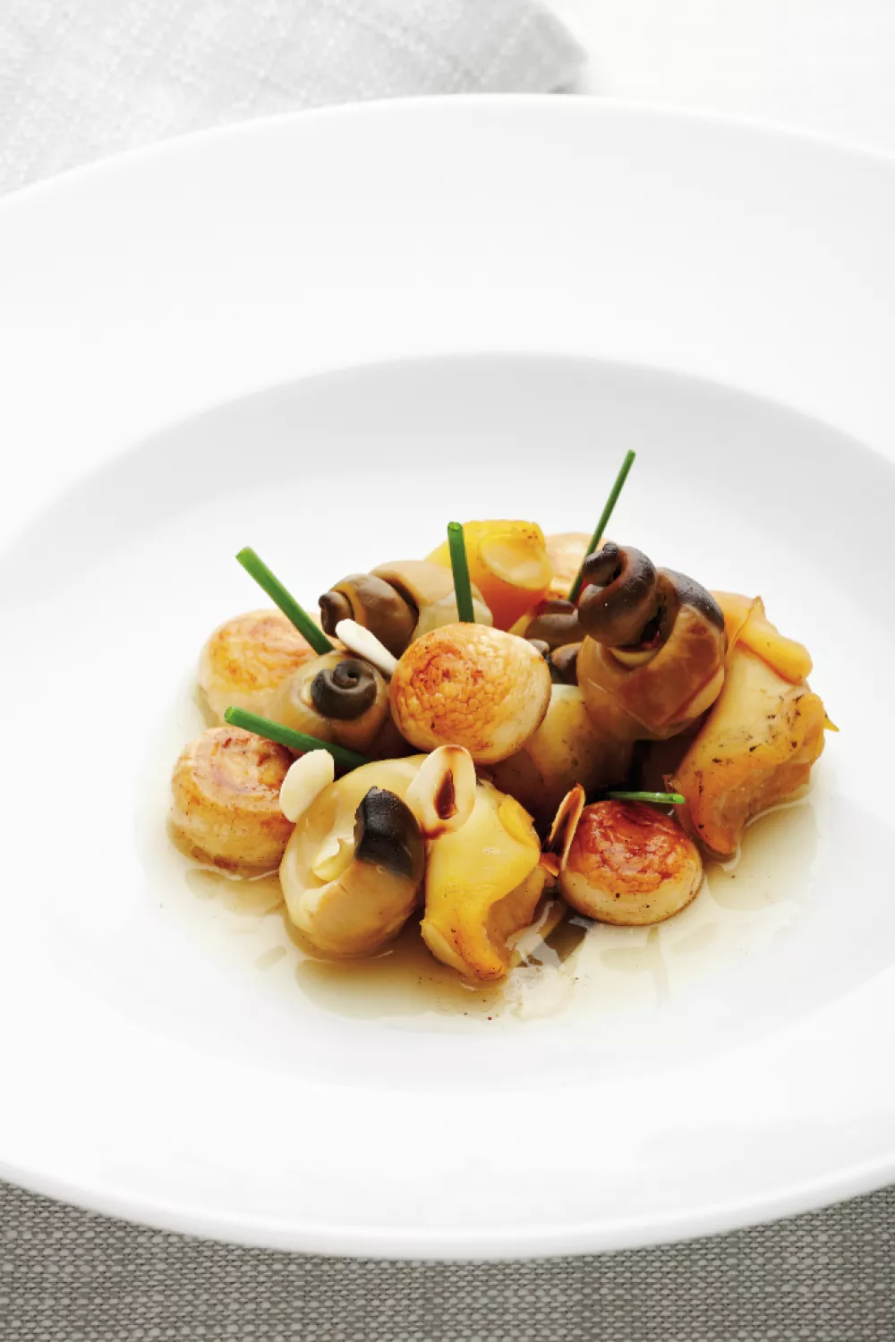Deze ragout van wulken en paddenstoelen combineert zilte zeevruchten met aardse champignons en frisse kruiden tot een warm en feestelijk hoofdgerecht. De wulken sudderen zacht in een aromatische court bouillon terwijl de paddenstoelen in boter worden gebakken voor extra umami en textuur. Met peterselie, bieslook en geroosterde amandelschilfers is het ideaal voor een knusse herfst of wintermaaltijd.