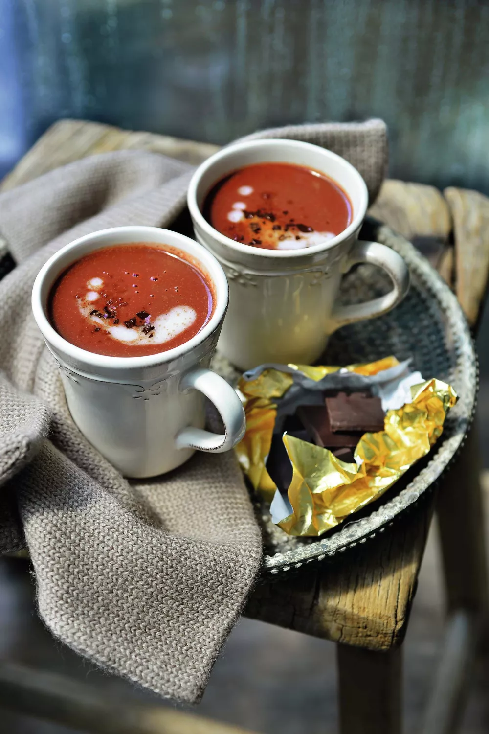 Romige red velvet warme chocomelk met zachte rode biet en dadels op basis van plantaardige melk, een verwarmende en plantaardige traktatie voor koude avonden en winterse feestjes. De fluweelzachte textuur bereik je door alle ingrediënten te blenden en kort op te warmen in een steelpannetje. Werk af met kokosroom, extra rauwe cacao of fijngehakte chocolade voor een feestelijk en knus drankje.