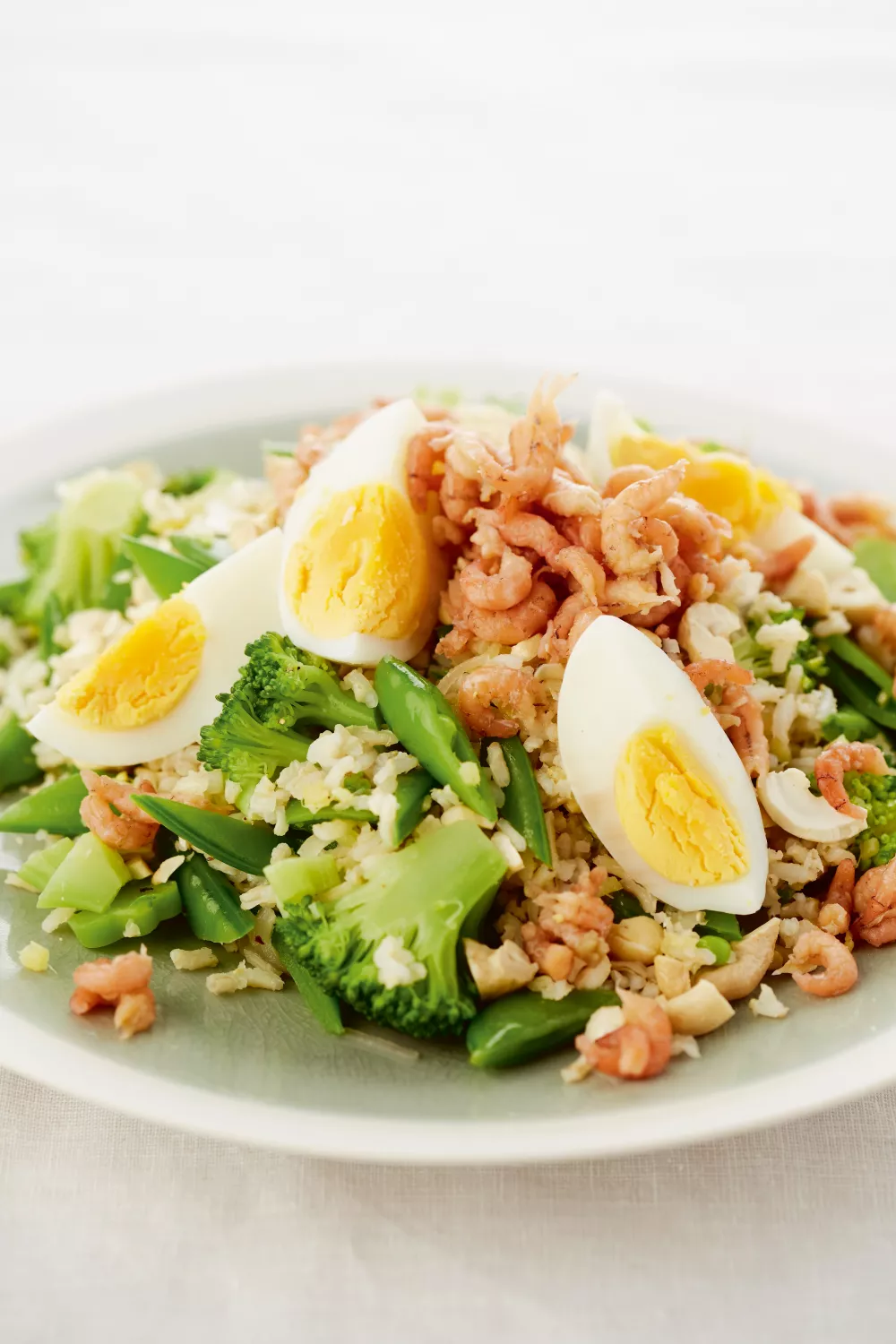 Stappenplan om recept “Rijstsalade met groene groenten, garnalen en gekookt ei” te bereiden