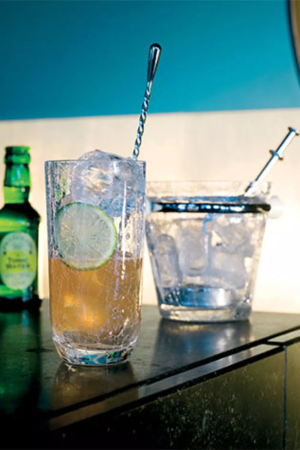 Garneer met een partje limoen en top af met de tonic. Serveer met een roestaafje.