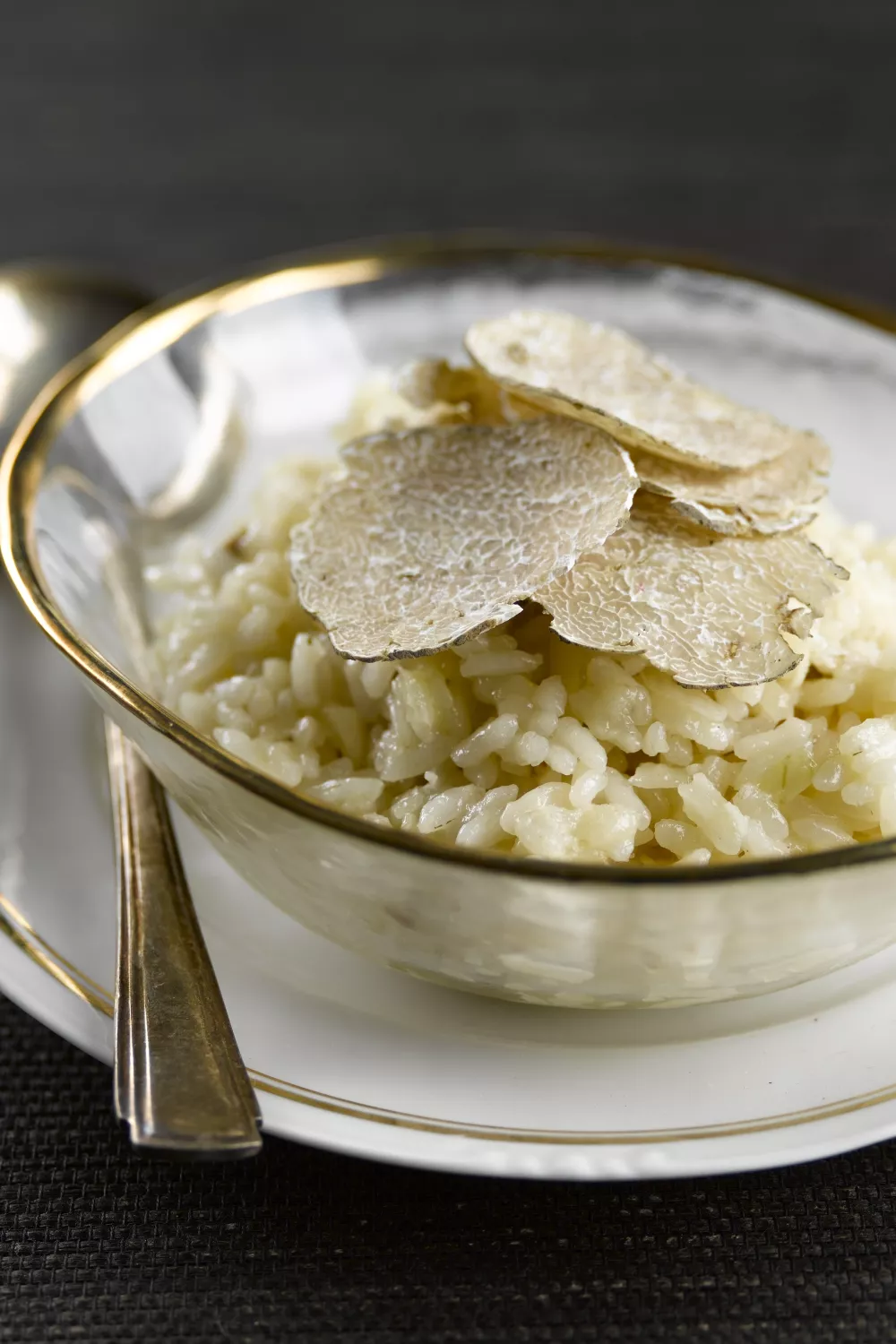 Verdeel de risotto over de borden en schaaf er de witte truffel over.