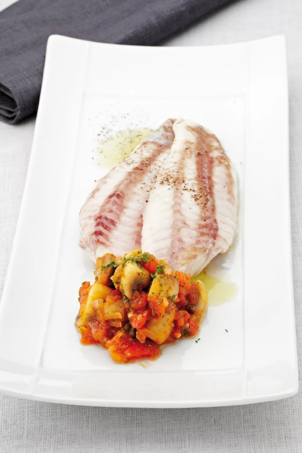 Rode poon met champignons la grecque combineert zachte, gestoomde visfilets met een hartige saus van tomaten, paddenstoelen, olijfolie en witte wijn voor een mediterraanse toets. De saus suddert rustig met ui, knoflook, gedroogde koriander, ketchup, Worcestersaus en een vleugje tabasco voor diepte en pit. Perfect als lichte zomerse vismaaltijd of als smaakvol doordeweeks diner.