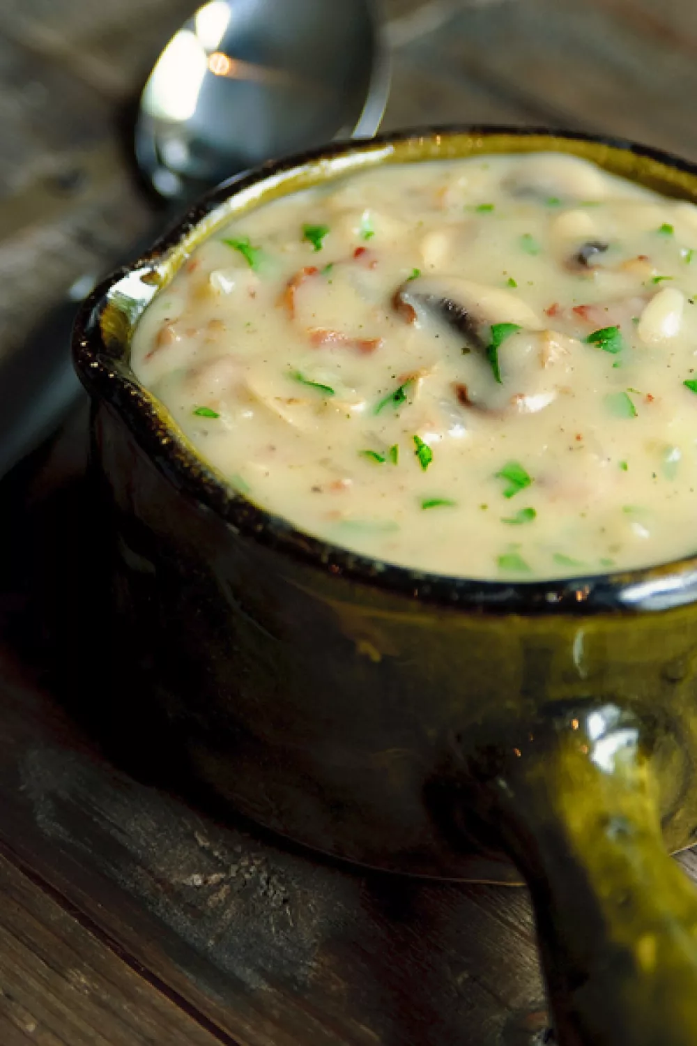 Deze romige champignonsaus met ui en krokante spekjes biedt een rijke, fluweelachtige textuur en aardse paddenstoelen met een subtiele toets van witte wijn. Je maakt hem eenvoudig door ui en champignons te bakken, de saus met bloem te binden en rustig in melk en groentebouillon te laten doorkoken tot hij perfect indikt. Lekker bij biefstuk en gebakken aardappeltjes of als troostrijk herfstgerecht, afgewerkt met verse peterselie en zwarte peper.