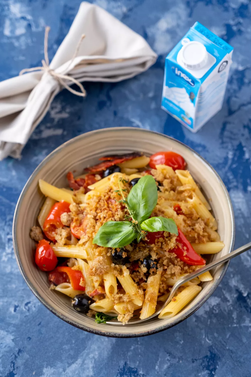 Romige penne met chorizo en pangrattato