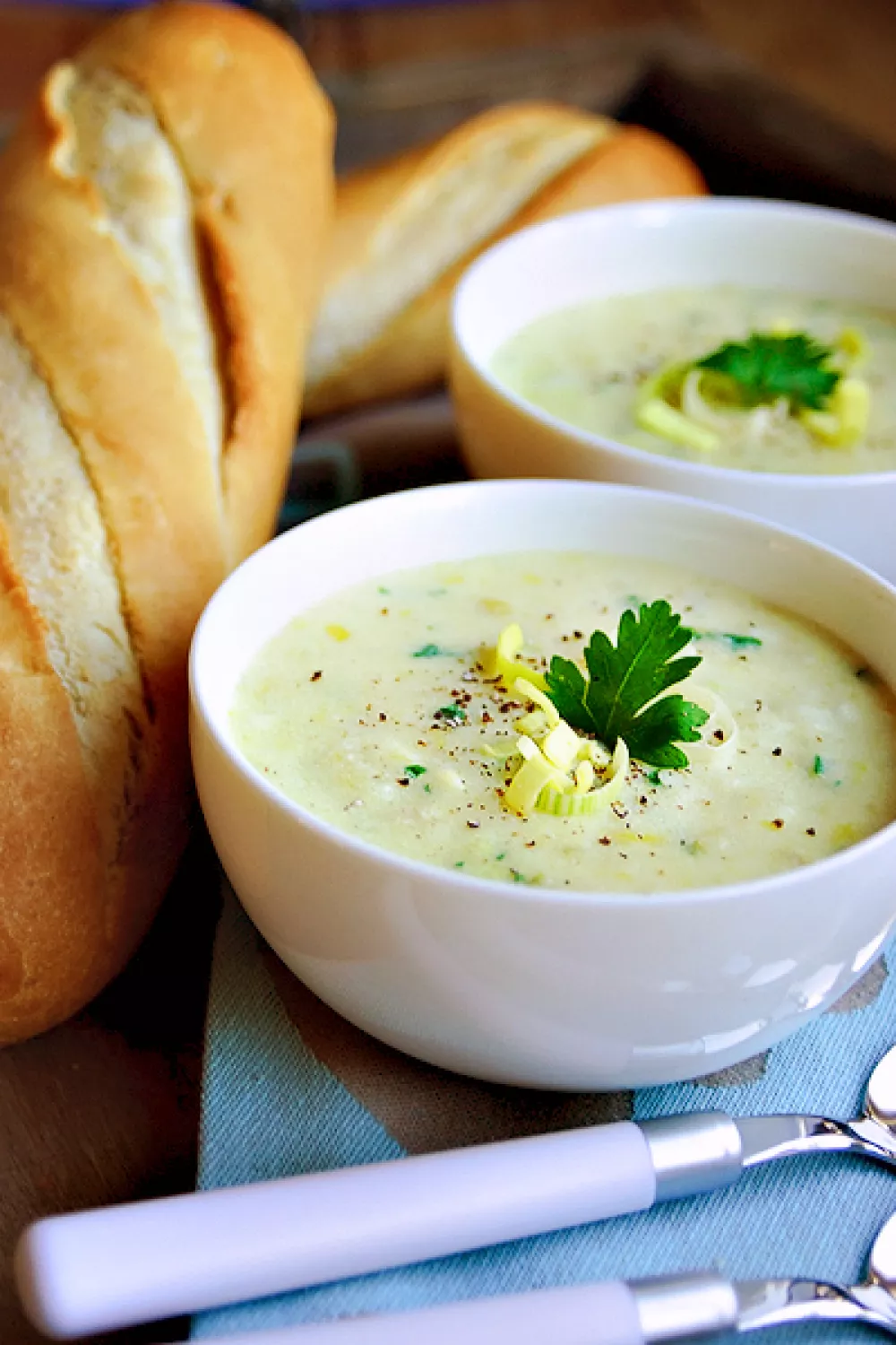 Fluweelzachte soep van schelvis en aardappel met prei en ui, subtiel op smaak gebracht met mosterd en een scheutje room, ideaal als troostrijke lunch of als verfijnd voorgerecht. De basis is een saus van bloem en melk die in boter wordt aangebakken en vervolgens zachtjes met melk en laurier wordt gekookt zodat de vis mals blijft en de smaken samensmelten. Serveer met knapperig stokbrood en verse peterselie voor extra textuur en frisheid.