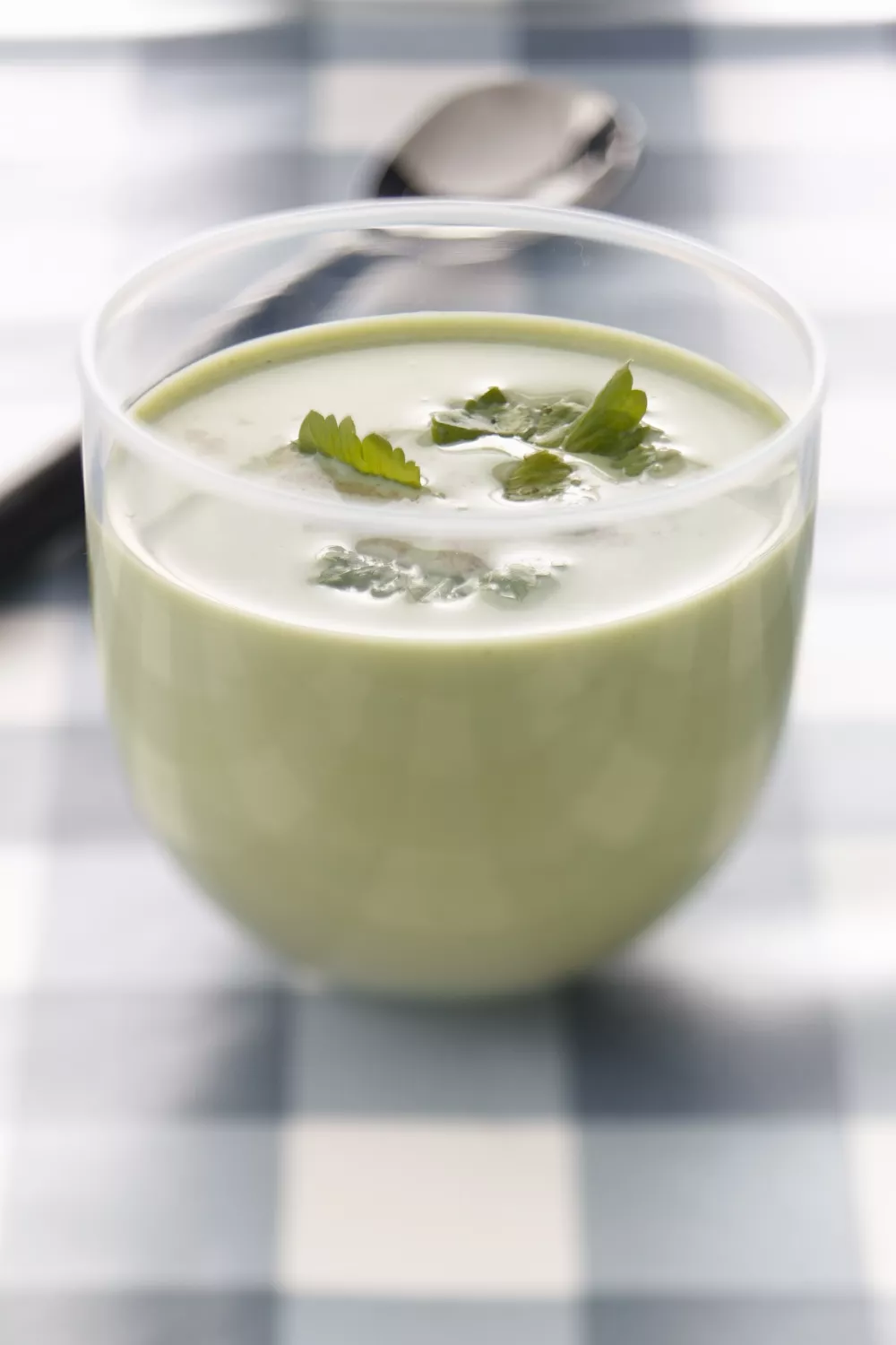 Romige seldersoep met lente uitjes brengt frisse selderstelen en de zachte scherpte van lente uitjes samen met volle melk voor een fluweelachtige, lichte smaak. In de blender gepureerd en door een fijne zeef gewreven ontstaat een zijdezachte textuur, op smaak gebracht met selderijzaad, zwarte peper en zout. Goed gekoeld is het een verfrissend voorgerecht of lichte lunch in lente en zomer.
