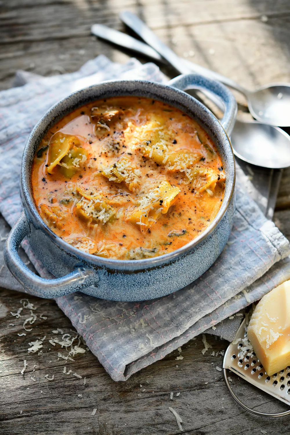 Deze romige tortellinisoep met champignons en verse spinazie combineert zachte tortellini en rijke Parmezaanse kaas tot een troostrijke eenpansmaaltijd. Goudgebraden ui en champignons krijgen extra diepte door tomatenpuree en gerookt paprikapoeder, waarna kippenbouillon en room alles tot een fluweelachtige soep maken. Ideaal voor een snelle doordeweekse avond of een gezellig herfstdiner met Italiaanse smaken.