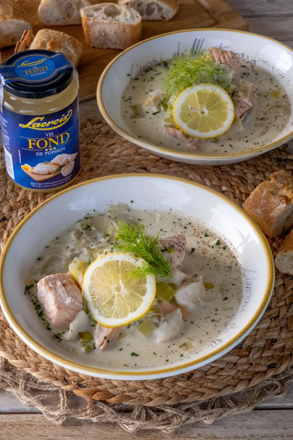 Stappenplan om recept “Romige vissoep met venkel en prei” te bereiden