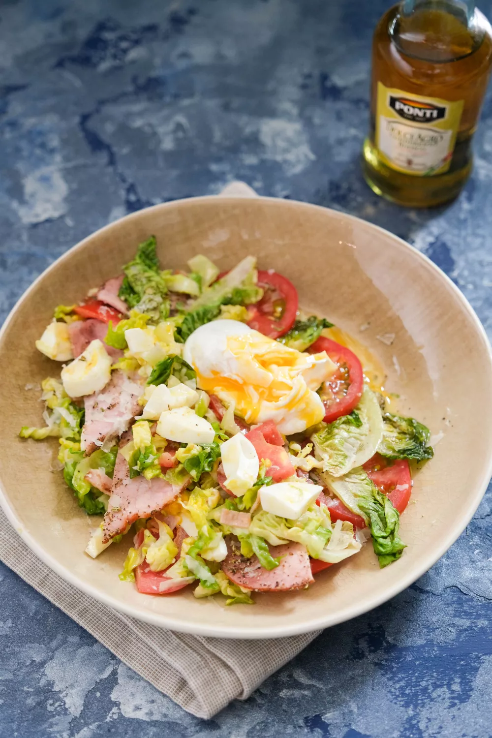 Frisse sucrinesla krijgt een hartige carbonara twist met krokante bacon, romige Parmezaanse kaas en zeste van limoen. Met pocheren van eieren, het krokant bakken van bacon en een vleugje venkelzaad maak je snel een elegante lunch of lichte avondmaaltijd. Tomaten, een scheutje olijfolie en Ponti Agro Dolce geven een frisse, lichtzoete toets die perfect bij het seizoen past.