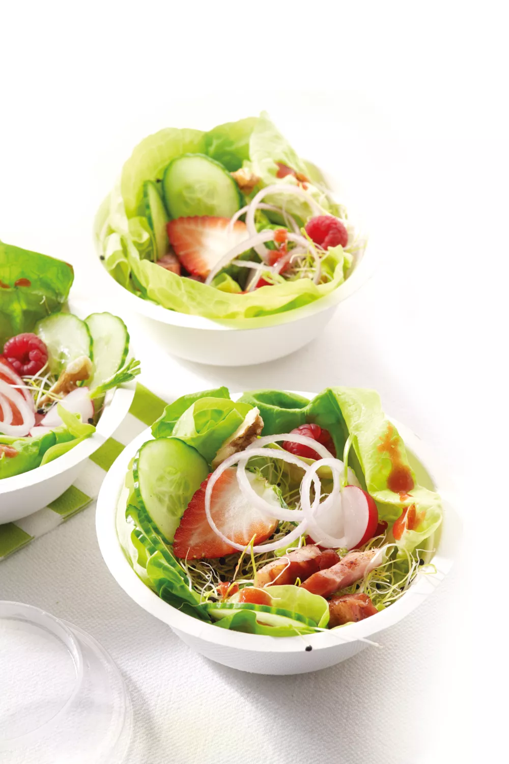 Stappenplan om recept “Salade met aardbeien, frambozen en spekblokjes” te bereiden