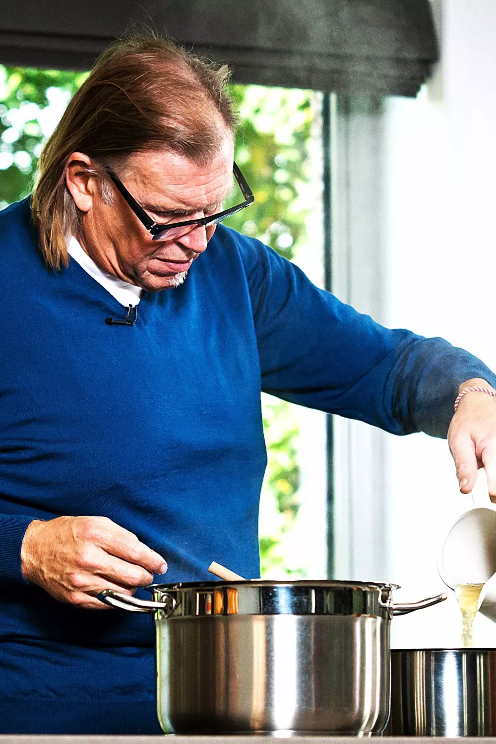 Een verfijnde, lichte salade met licht aangebraden sint-jakobsvruchten en knapperige girolles, afgewerkt met rucola, veldsla en geroosterde hazelnoten. De korte sautering van de paddenstoelen en het schroeien van de coquilles geven diepte en textuur, terwijl een nootachtige vinaigrette met druivenpitolie, notenolie en chardonnayazijn voor frisse balans zorgt. Perfect als elegant voorgerecht bij een herfstig diner of als verfijnde zomerse lunch.