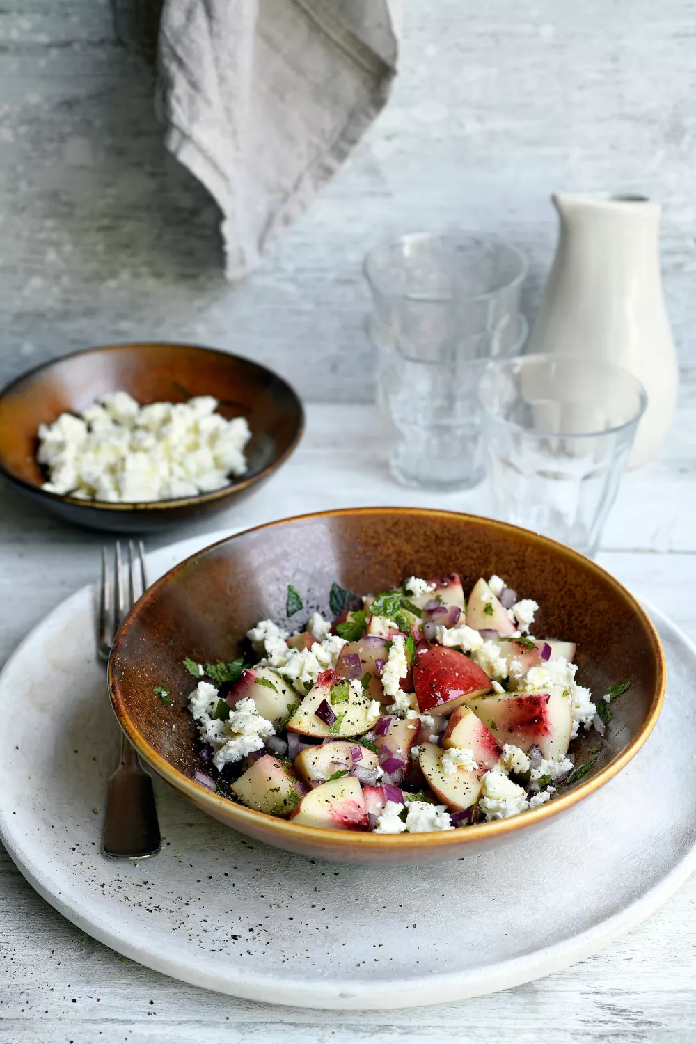Stappenplan om recept “Salade van nectarine, rode ui, feta en munt” te bereiden