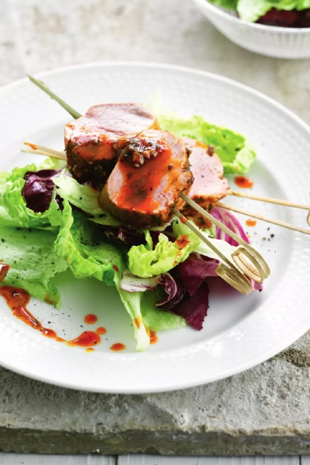 Stappenplan om recept “Saté van varkensvlees met trio van sla” te bereiden