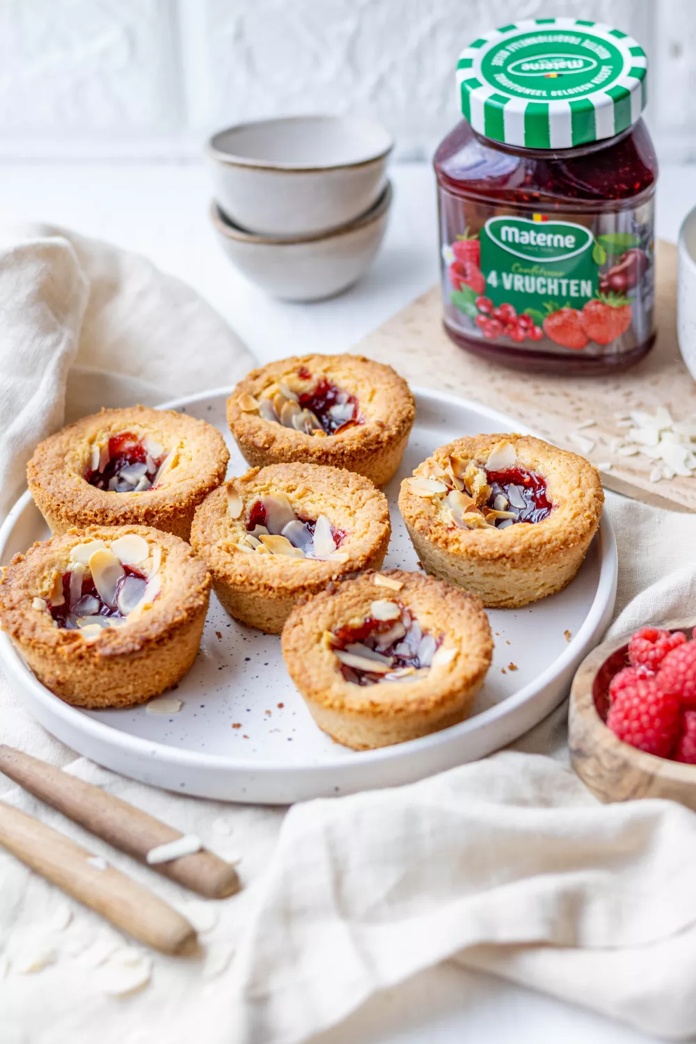 Kleine Scandinavische confituurtaartjes met een boterig, licht kruimelig deeg en frisse citroenzeste, afgewerkt met warme vanille en knapperige amandelschilfers. Het eenvoudige deeg van patisseriebloem en maïszetmeel wordt kort gekneed, in muffinvormpjes gevormd en gevuld met viervruchtenconfituur voor een zoete, fruitige kern. Ideaal voor fika, high tea of een zomerse picknick, snel afgebakken op 180 graden.