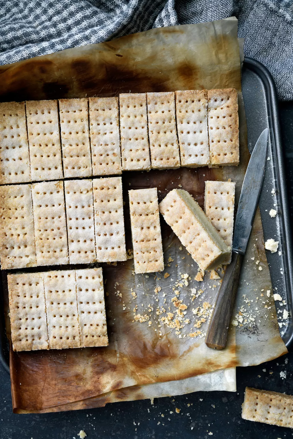 Deze klassieke shortbread koekjes zijn heerlijk boterig en smeltend vanbinnen, met een licht korrelige structuur die ontstaat door zachte boter en bloem luchtig te kloppen en kort te kneden. Met slechts boter, kristalsuiker en tarwebloem maak je een eenvoudige ovengebakken traktatie die perfect past bij een kopje thee, als kerstkoekje of voor een gezellige herfst of wintermiddag. Duw het deeg in een vorm, prik de typische gaatjes en snijd na het bakken voor mooie rechthoekige koekjes met een knapperige buitenkant en zachte binnenkant.