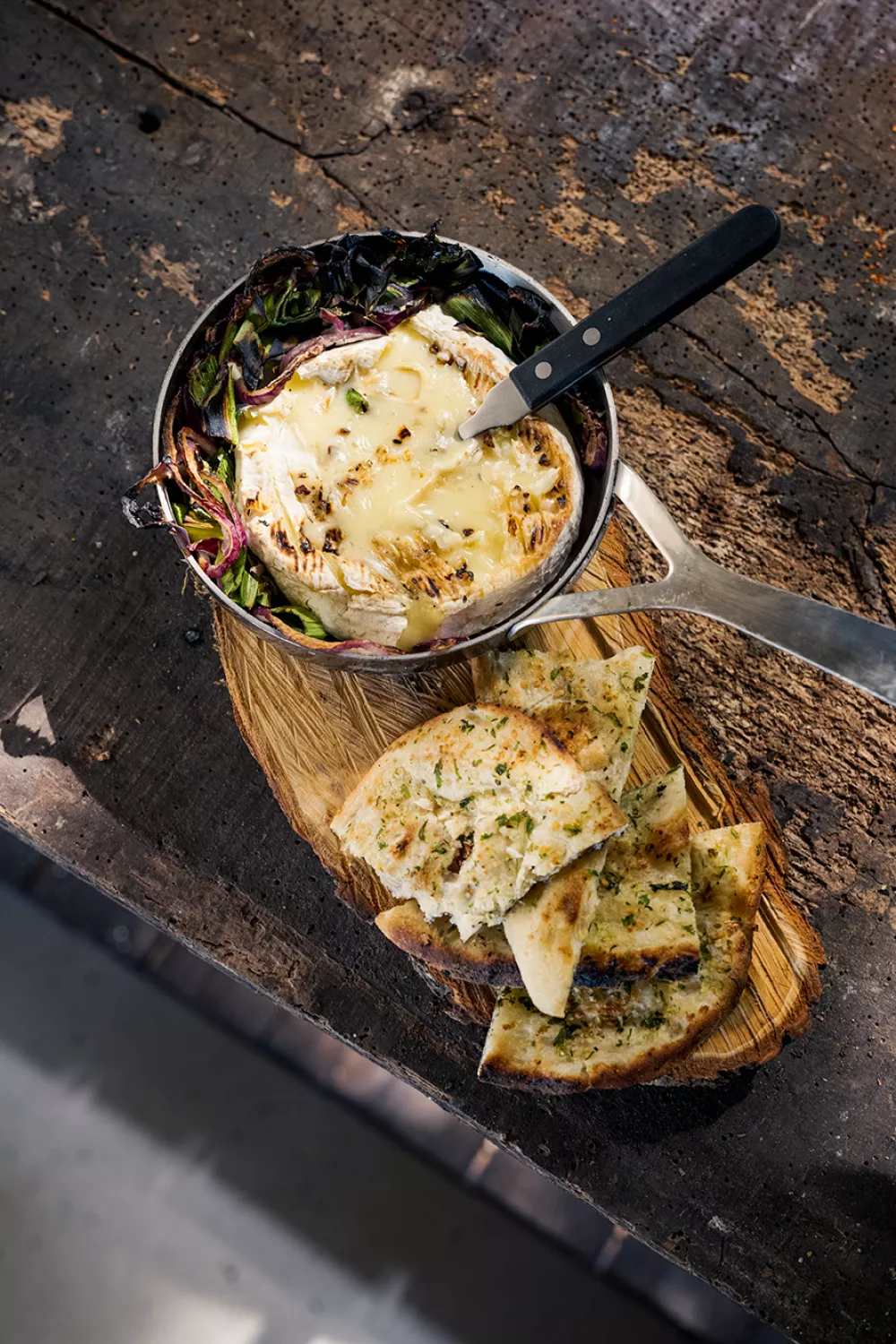 Zorg voor een bbq of houtoven die minimaal 180 °C is. Snijd het smeltkaasje kruislings in en zet in een pannetje. Snijd de ui en de prei in ringetjes, en leg rond de kaas. Snijd de knoflook in kleine blokjes en leg die samen met de Provençaalse kruiden boven op het kaasje. Stop het kaasje in de oven en laat rustig vloeibaar worden.
