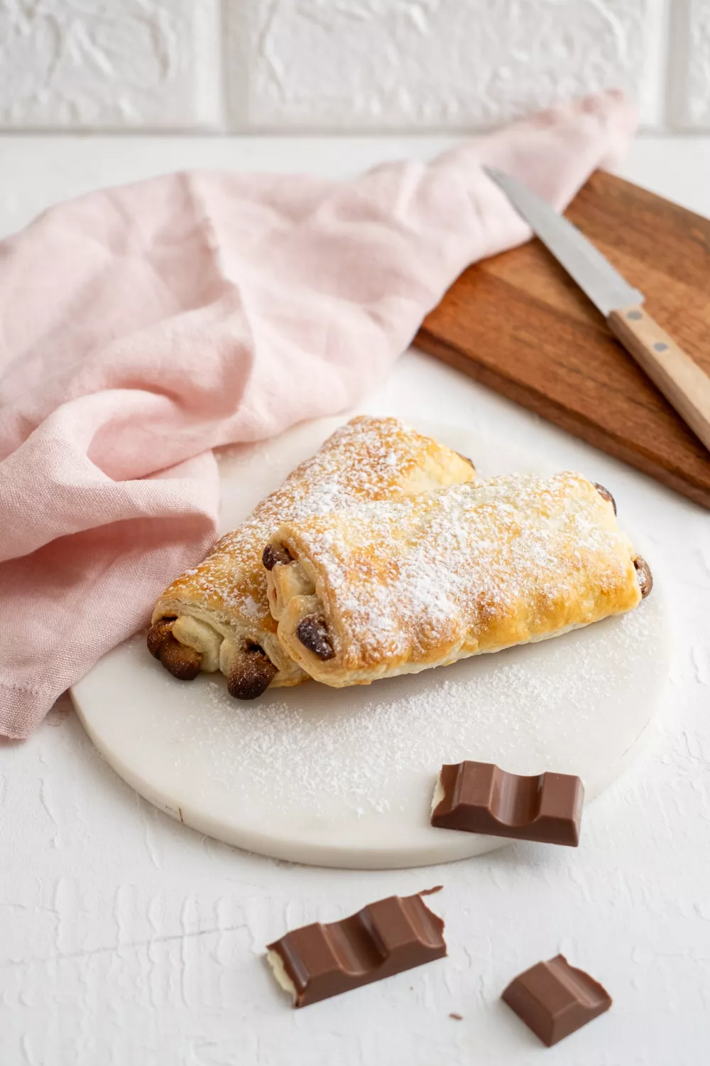Makkelijke chocoladebroodjes met romige Kinder Chocolate en krokant bladerdeeg zijn in weinig tijd klaar en ideaal als warme snack bij koffie of als feestelijk dessert. Met eenvoudig vouwen, bestrijken met losgeklopt ei en een korte baktijd in de oven haal je goudbruine, smeltende broodjes uit de oven. Bestrooi met poedersuiker en serveer ze als zoete traktatie voor brunch, borrel of gezellige herfstavonden.