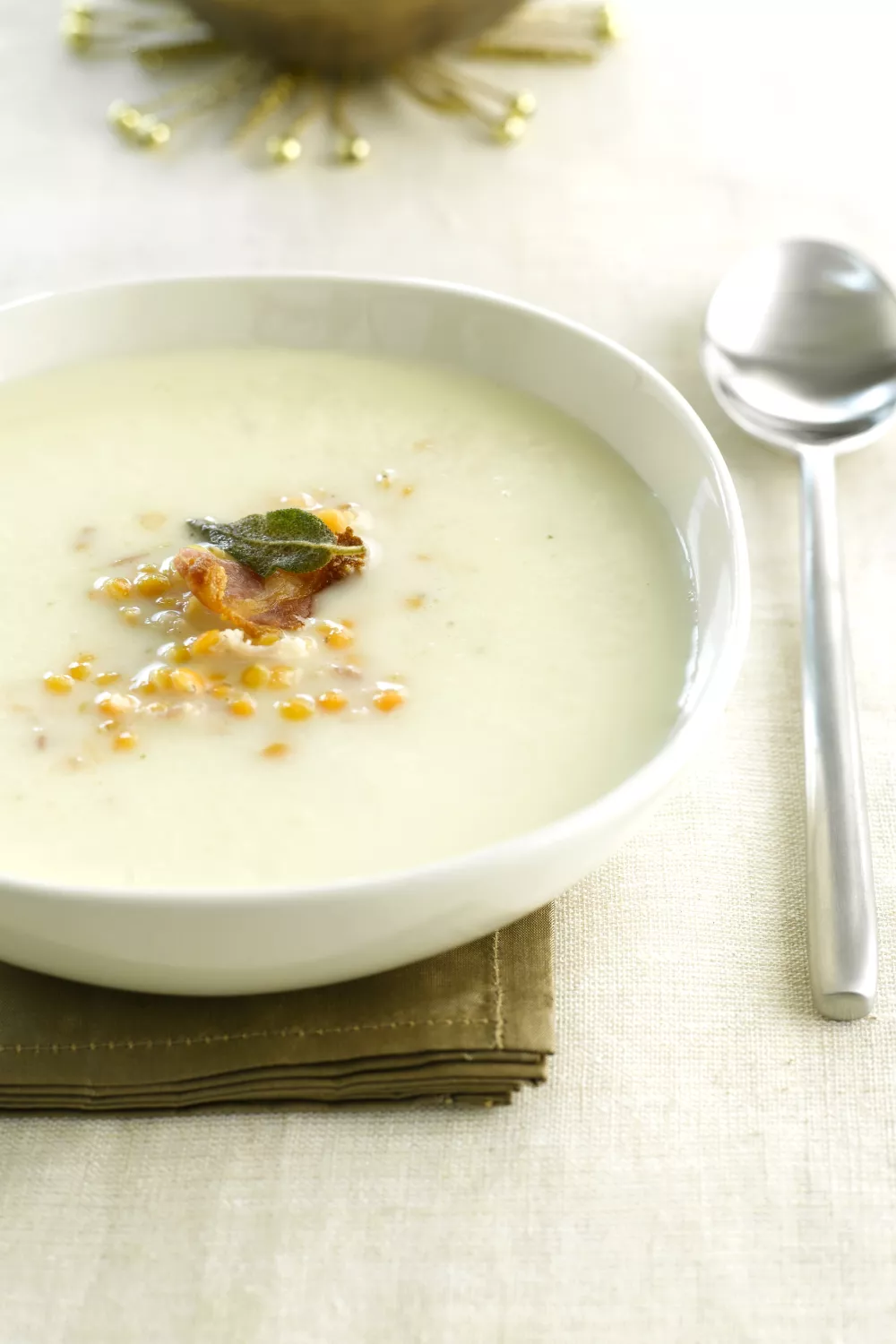 Deze romige knolseldersoep met rode linzen en krokante pancetta is pure comfortkeuken voor koude dagen. Ui, look, chili en aardappel worden rustig gestoofd, geblust met kippenbouillon en zijdezacht gemixt met kruidenroomkaas, terwijl de linzen apart in groentebouillon beetgaar koken. Ideaal als winterse maaltijdsoep, doordeweekse lunch of stijlvol voorgerecht, afgewerkt met salie.