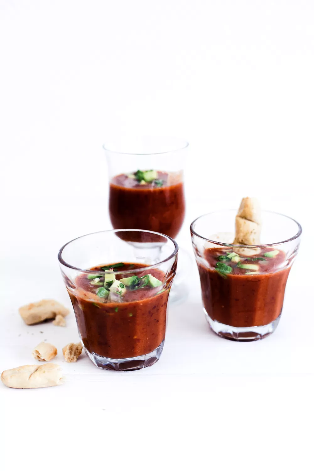 Soep van rode bonen met salsa van avocado en kaaskoekje