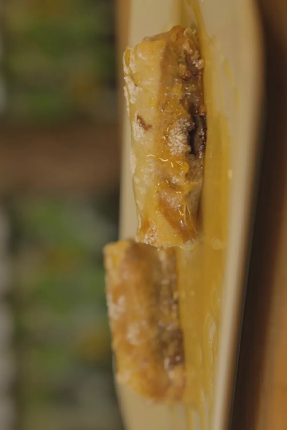 Bestrooi met poedersuiker en werk af met een mengeling van honing, rozenwater en limoensap.