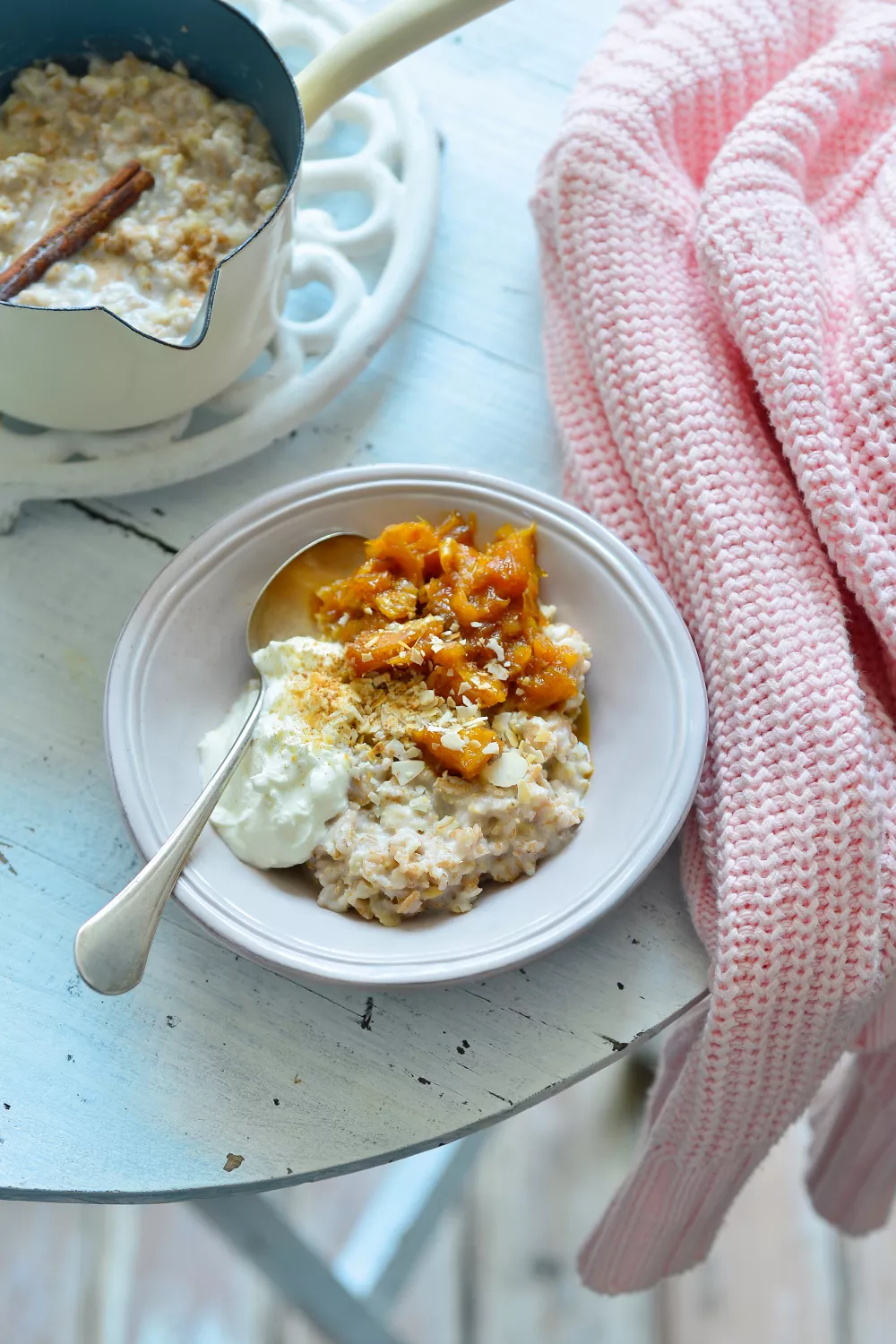 Romige pap van spelt en havervlokken, zacht gegaard in plantaardige melk met een snufje zout en warme kaneel, afgewerkt met gekonfijte sinaasappelstukjes. Kokosbloesemsuiker en geroosterde amandelen geven een karamellige crunch en volle kwark of Griekse yoghurt zorgt voor romige frisheid. Ideaal als voedzaam ontbijt of weekendbrunch in het najaar en de winter.