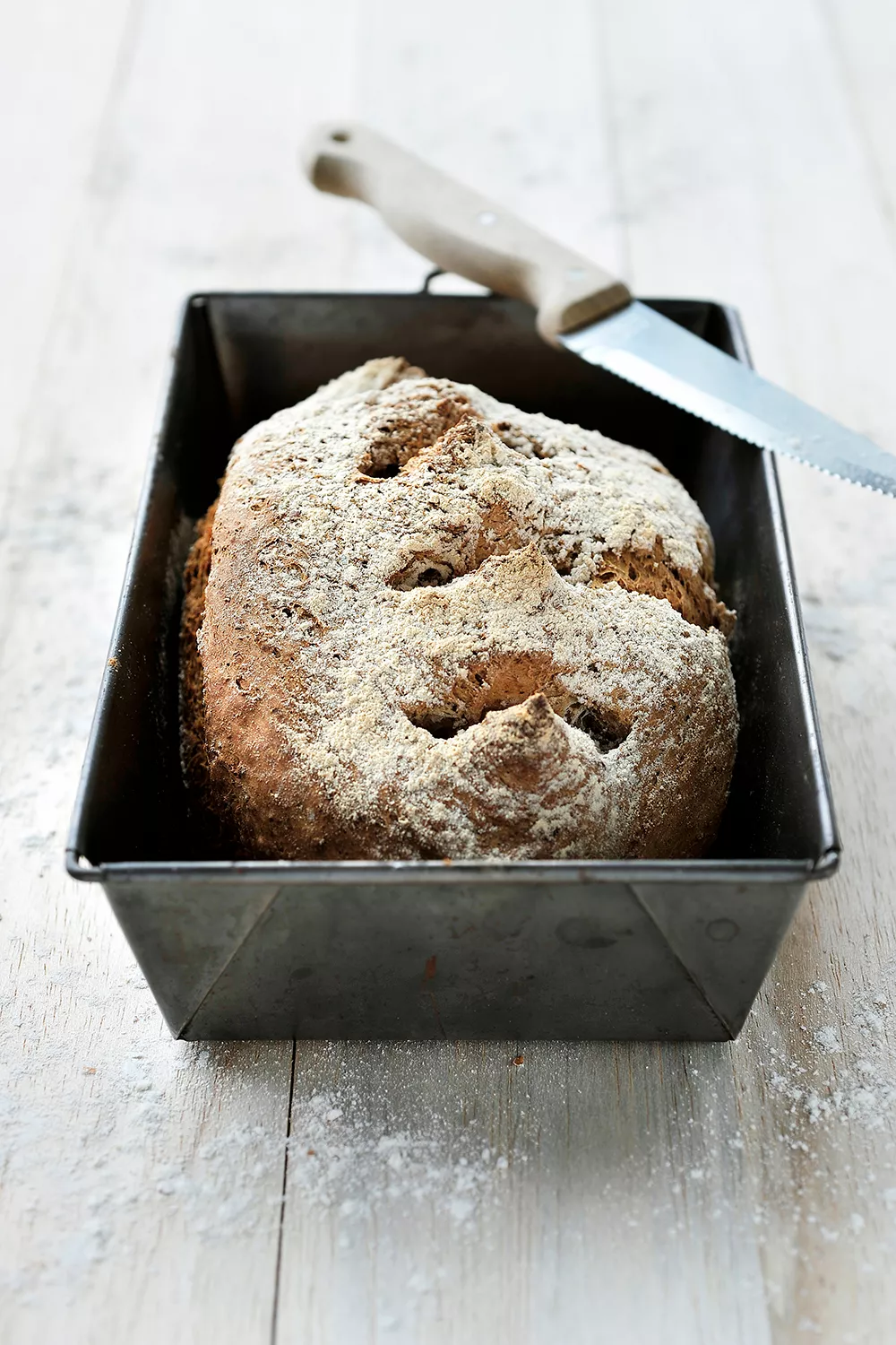 Bak het brood in 50 minuten gaar in een voorverwarmde oven van 225°C. Temper eventueel na enige tijd de oven als het brood te snel donker kleurt. Een gaar brood heeft minimaal 45 minuten baktijd nodig.